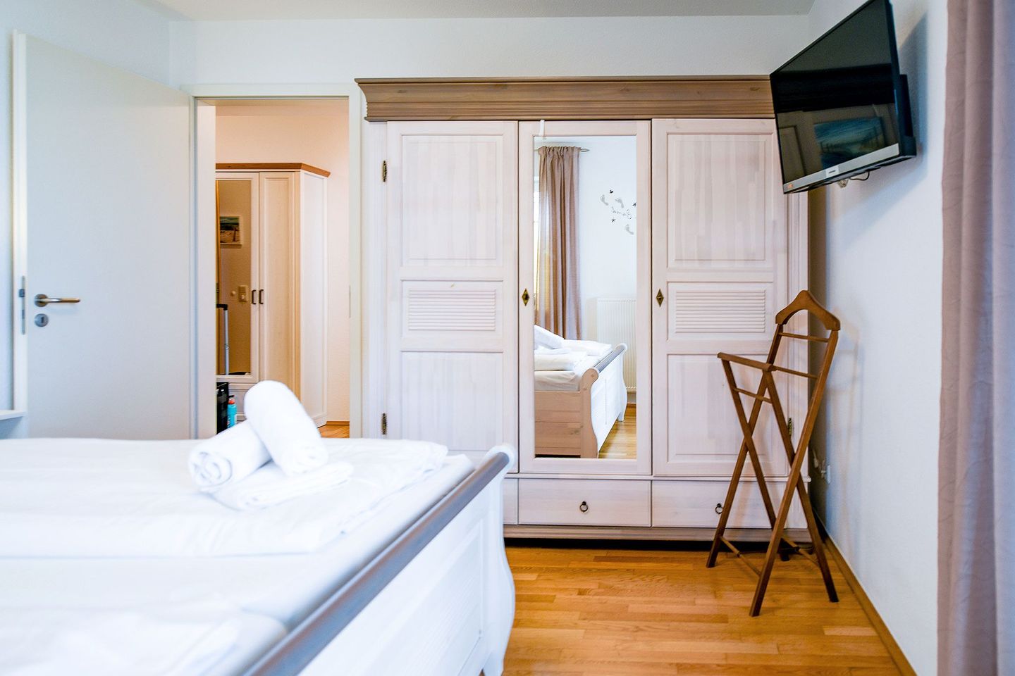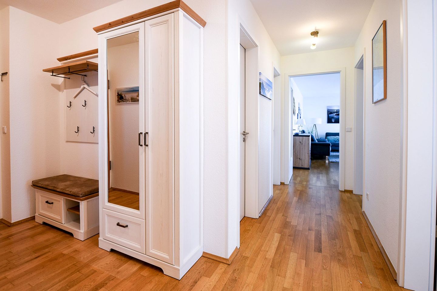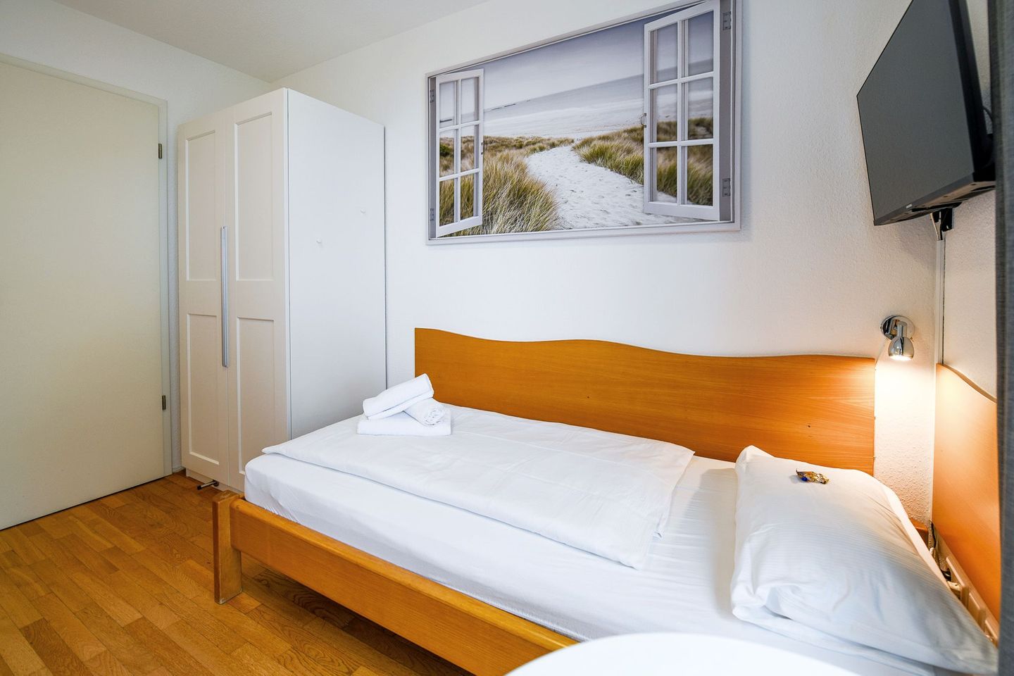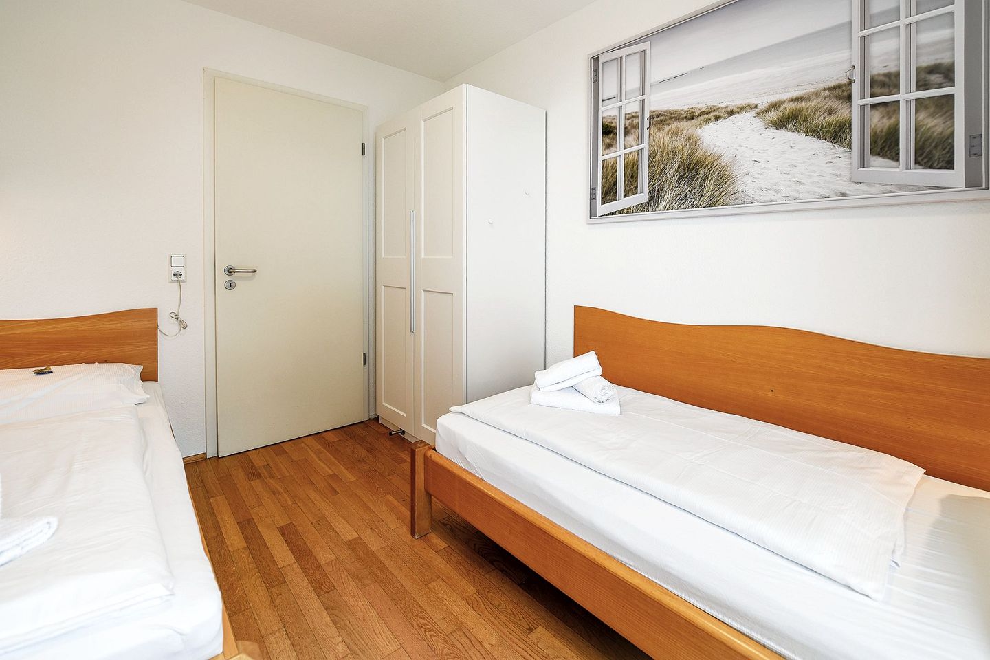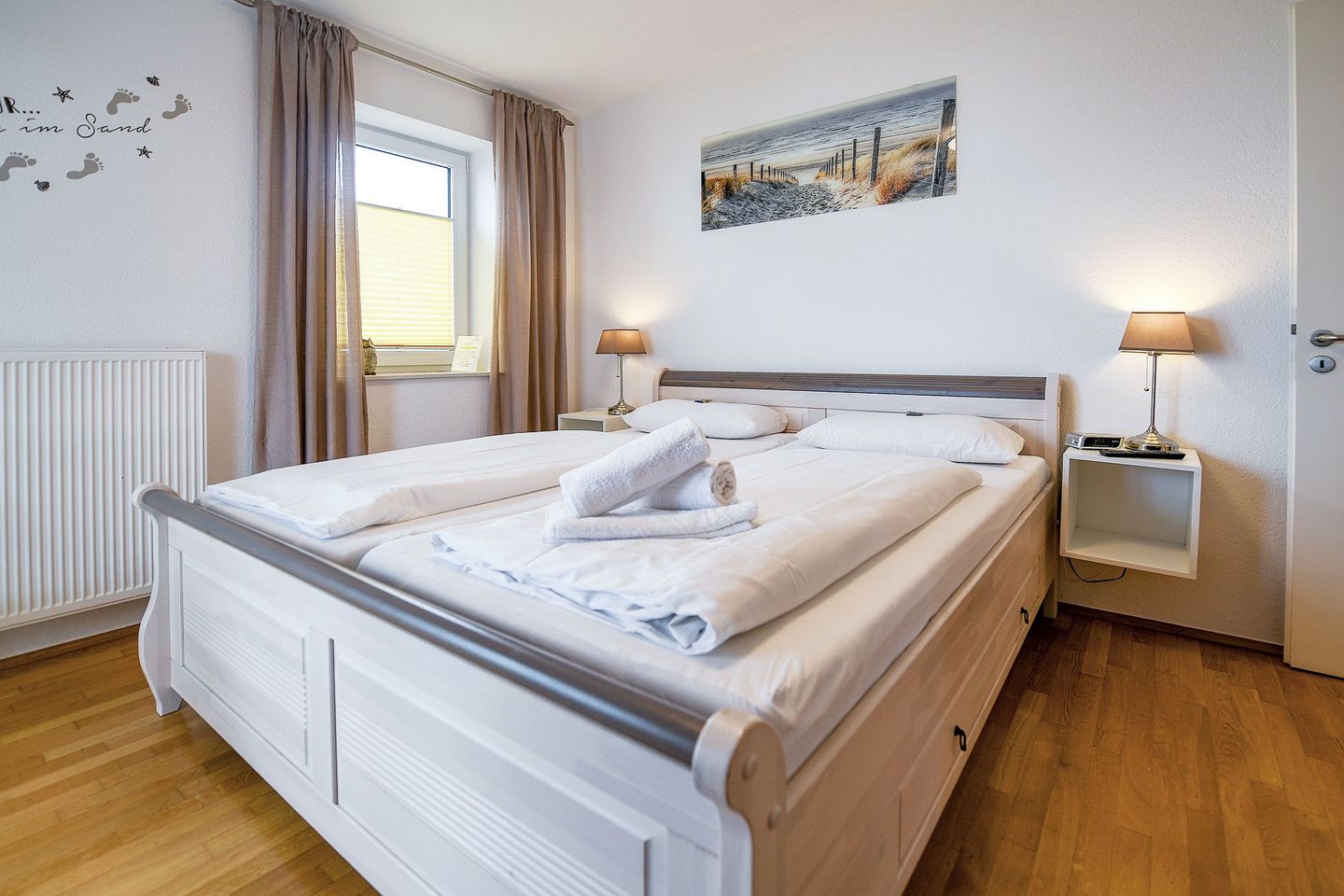 Zwei möblierte Balkone mit Ausrichtung zur See laden zum Verweilen ein. Die Ferienwohnung verfügt über zwei separate Schlafzimmer, ein großzügiges Bad mit Dusche und Badewanne, ein zusätzliches Gäste-WC sowie eine voll ausgestattete Küche mit Spülmaschine. Drei Flatscreen-TVs, kostenloses WLAN und eine eigene Miele-Waschmaschine sorgen für modernen Komfort. Ein eigener Tiefgaragenstellplatz mit direktem Zugang ins Haus ist ebenfalls vorhanden. Ein persönlicher Strandkorb am Strand steht Ihnen saisonal kostenfrei zur Verfügung.