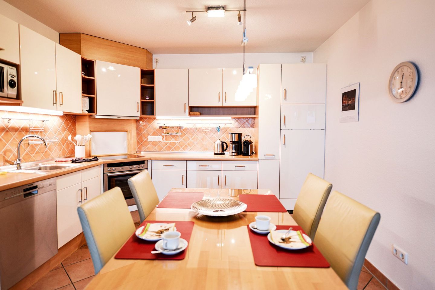 Vom lichtdurchfluteten Wohnbereich sowie von beiden überdachten Balkonen genießen Sie einen traumhaften Blick auf die Nordsee. Zwei moderne Bäder – eines mit Dusche, eines mit Badewanne – sorgen für Komfort und Erholung. Die voll ausgestattete Küchenzeile bietet alles für genussvolle Urlaubstage. Zwei separate Schlafzimmer, Flatscreen-TVs, kostenloses WLAN und eine eigene Waschmaschine runden das Wohlfühlambiente ab.