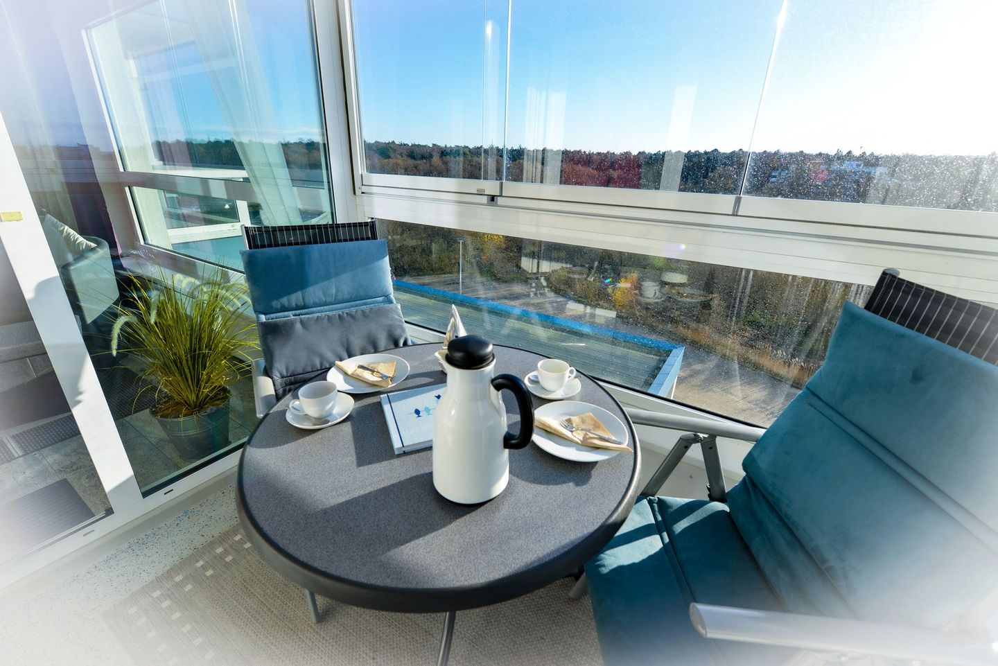 Alle Ferienwohnungen verfügen über eine voll ausgestattete Küche oder Küchenzeile sowie ein modernes Badezimmer. Viele Einheiten bieten zudem eine beeindruckende Panorama-Seesicht – bei guter Sicht reicht der Blick sogar bis zur Nordseeinsel Neuwerk.