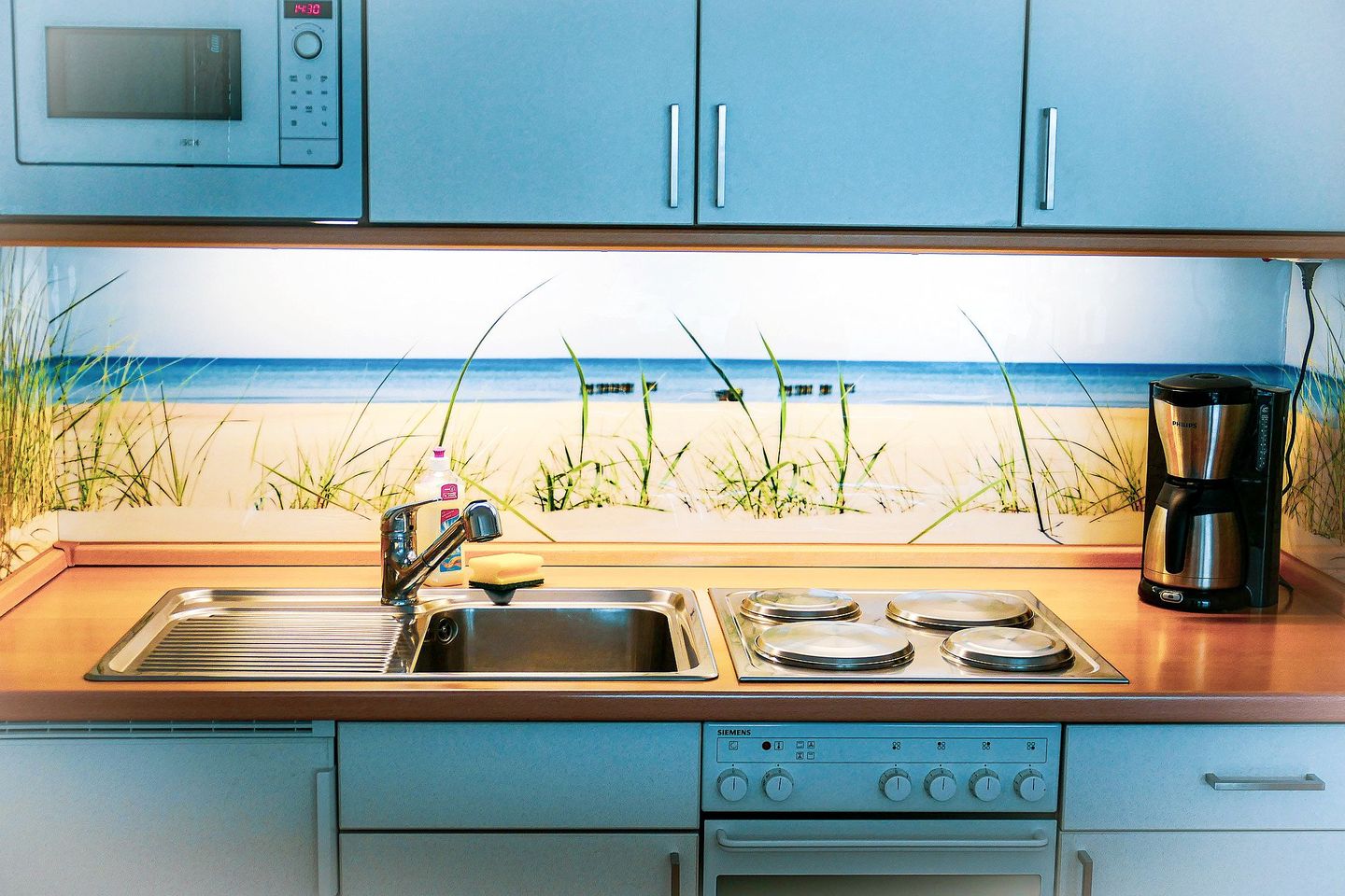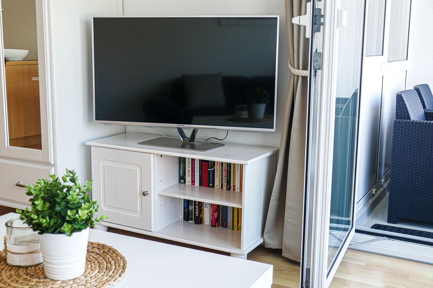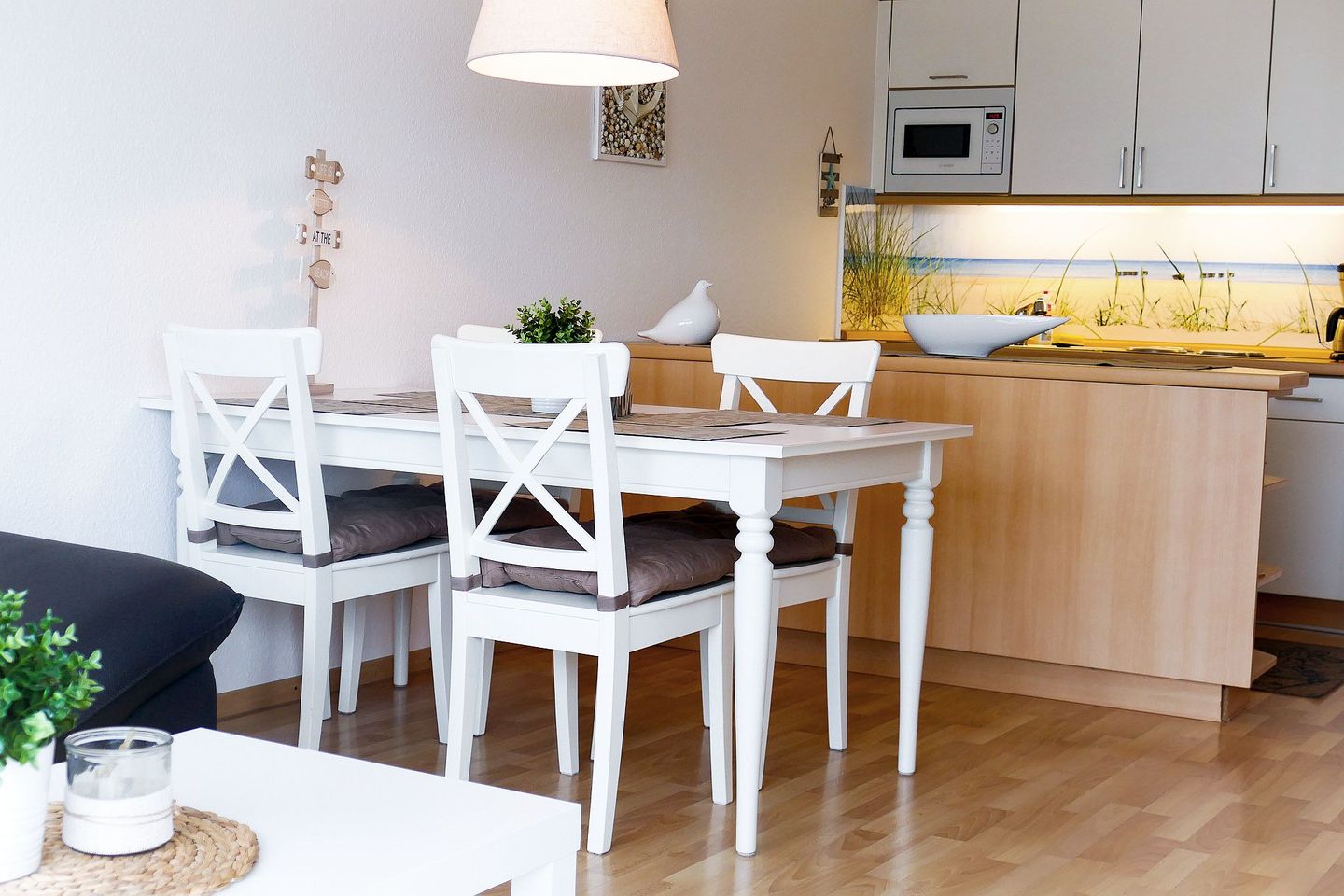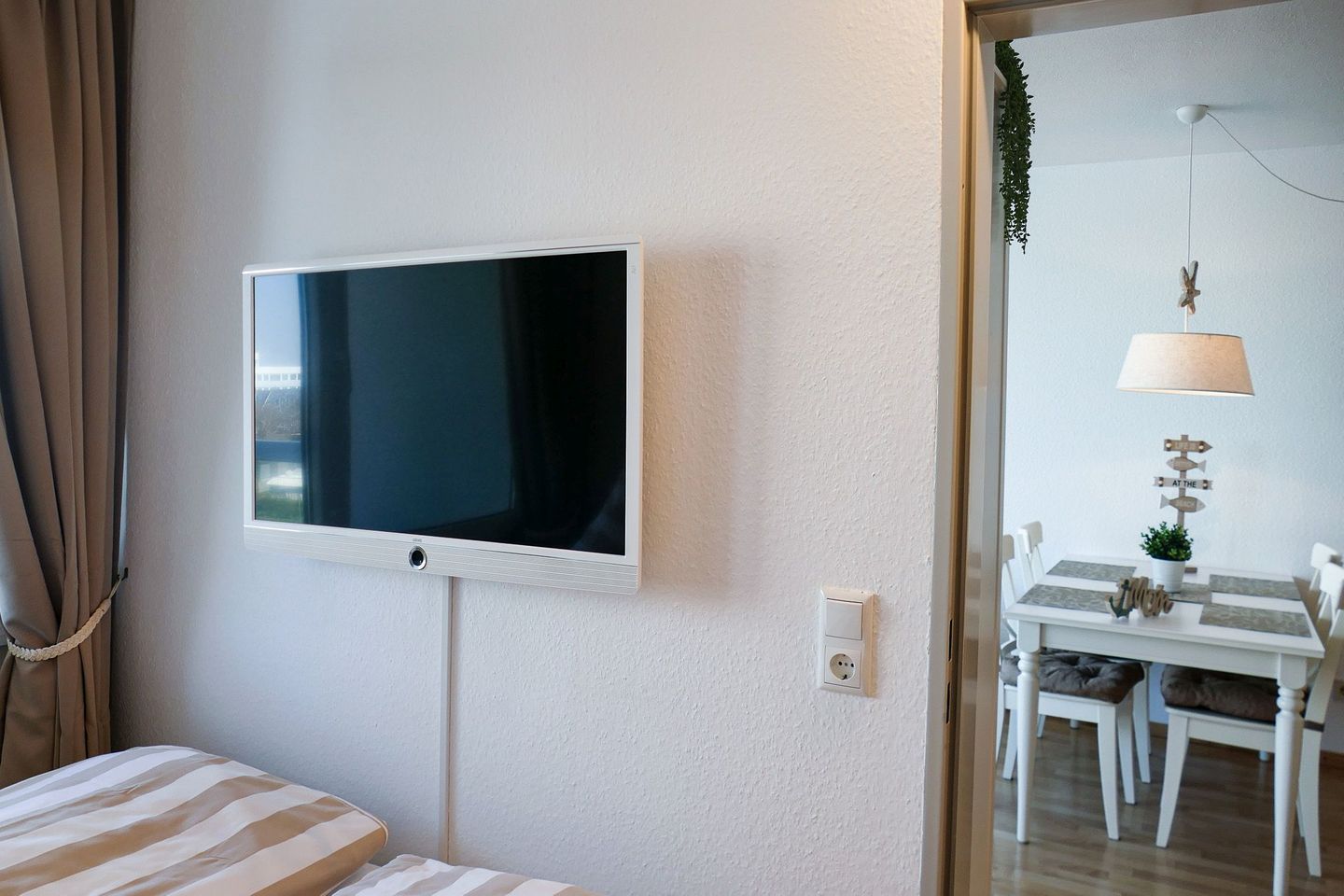 Die Wohnung ist mit allem ausgestattet, was Sie für einen sorgenfreien Aufenthalt benötigen. Die vollausgestattete Küchenzeile ermöglicht es Ihnen, Ihre Mahlzeiten selbst zuzubereiten und in der gemütlichen Atmosphäre der Wohnung zu genießen. Das Bad mit bodentiefer Dusche sorgt für eine angenehme Erfrischung nach einem langen Strandtag. In beiden Zimmern befinden sich Flatscreen TV, die zu einem entspannten Abend auf der Couch oder im Bett einladen.