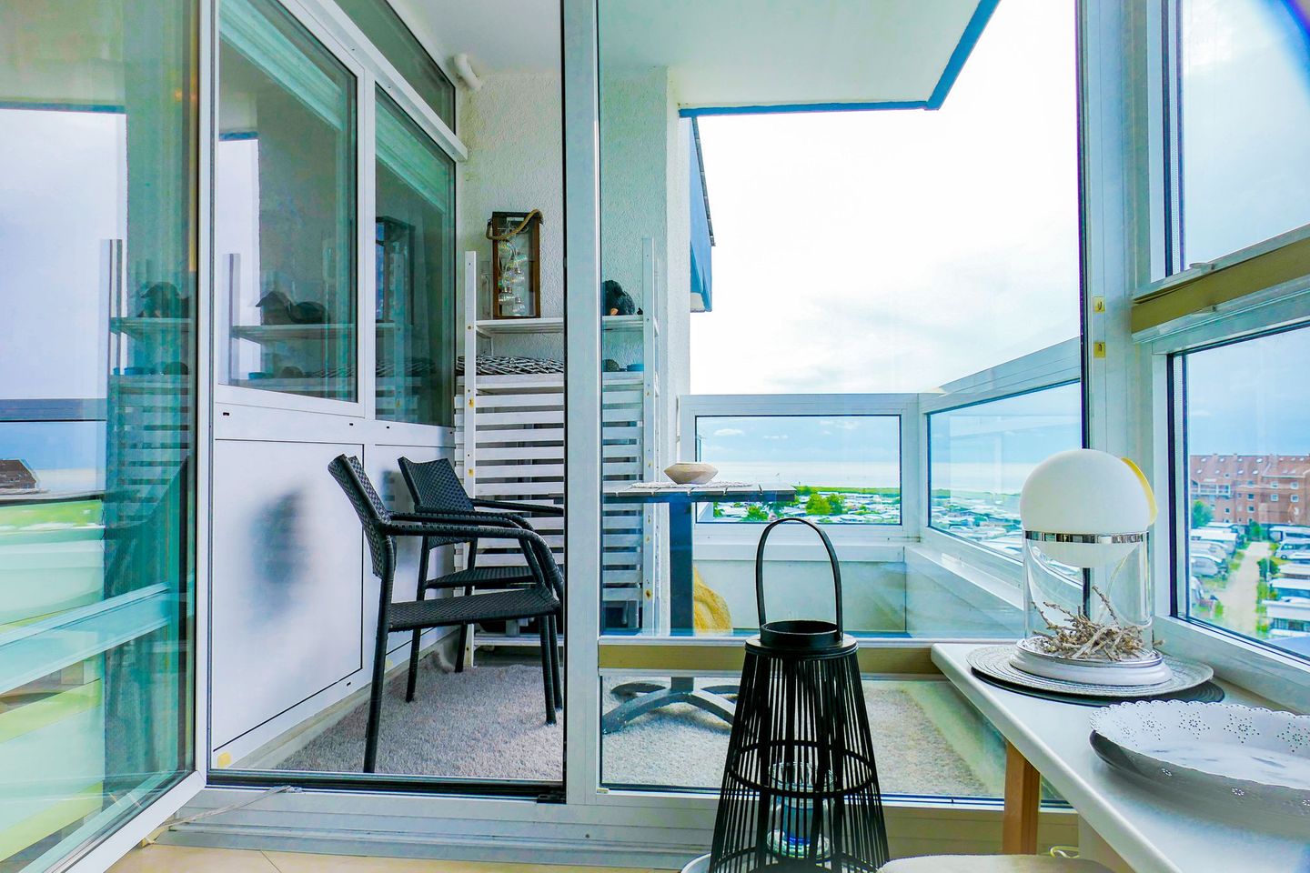 Alle Ferienwohnungen verfügen über eine voll ausgestattete Küche oder Küchenzeile sowie ein modernes Badezimmer. Viele Einheiten bieten zudem eine beeindruckende Panorama-Seesicht – bei guter Sicht reicht der Blick sogar bis zur Nordseeinsel Neuwerk.