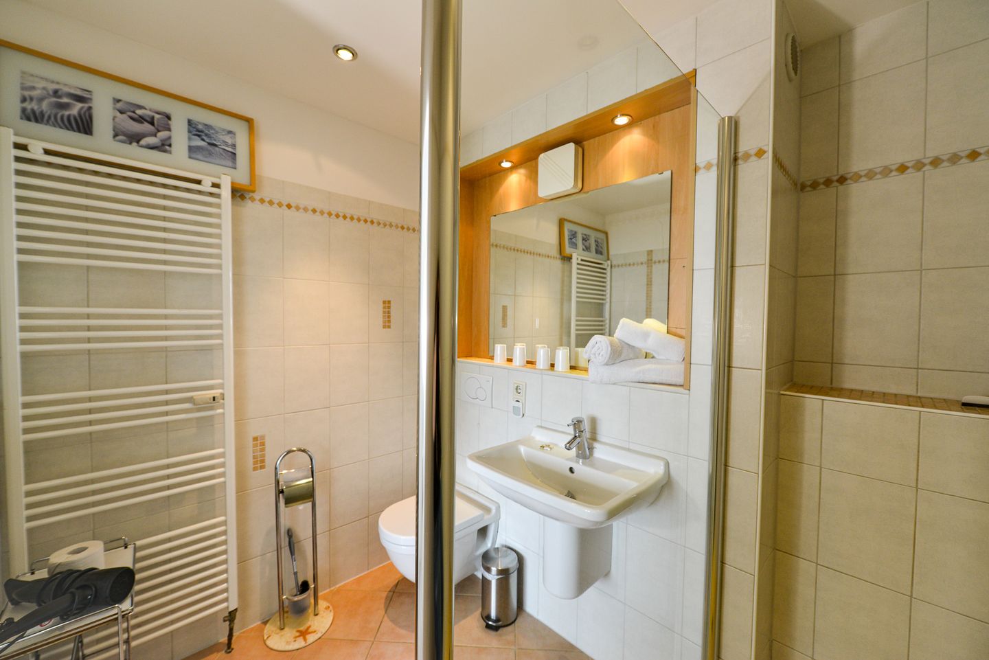 Während Ihres Aufenthaltes genießen Sie exklusiven Zugang zum großzügigen, lichtdurchfluteten Schwimmbad im Haus. Die Schwimmhalle bietet mit einer Beckengröße von 18 x 8 Metern und einer Wassertiefe von 1,35 Metern beste Voraussetzungen für sportliches Schwimmen und entspanntes Badevergnügen – ganz unabhängig vom Wetter. Für zusätzliche Erholung stehen Ihnen Saunen gegen Gebühr zur Verfügung.