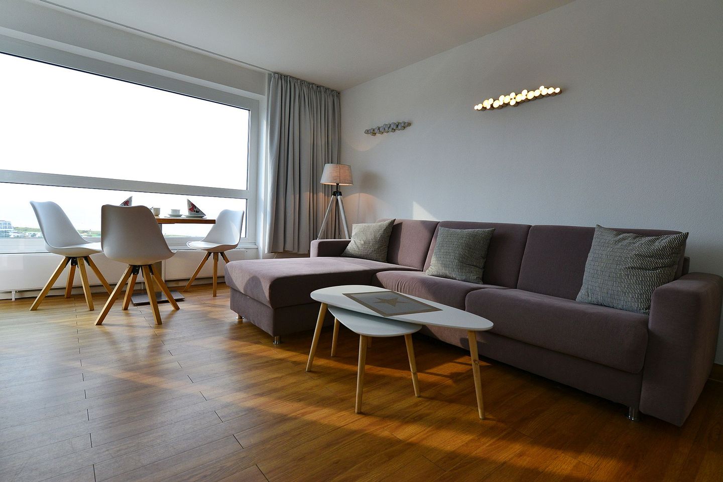 Alle Ferienwohnungen verfügen über eine voll ausgestattete Küche oder Küchenzeile sowie ein modernes Badezimmer. Viele Einheiten bieten zudem eine beeindruckende Panorama-Seesicht – bei guter Sicht reicht der Blick sogar bis zur Nordseeinsel Neuwerk.