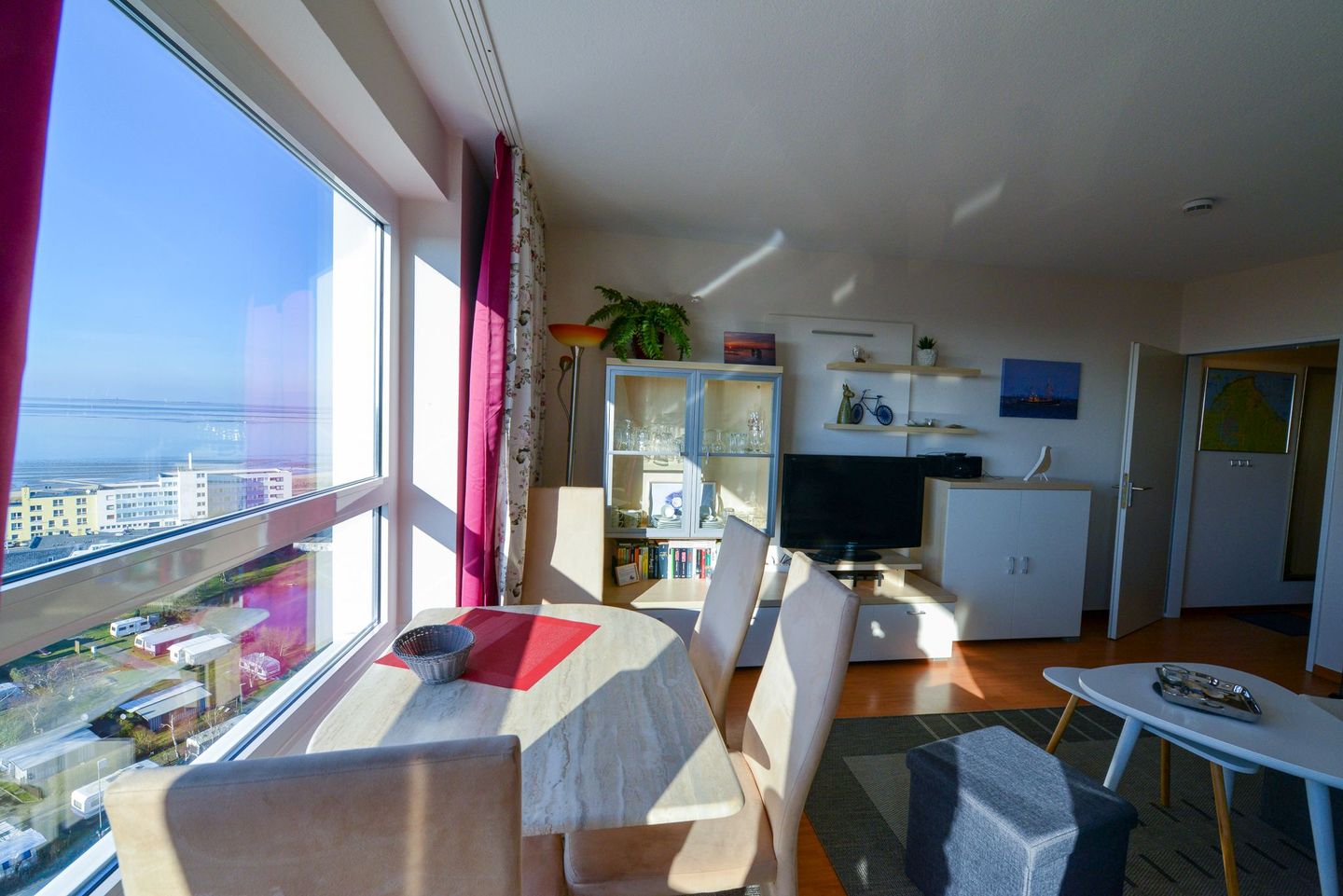 Alle Ferienwohnungen verfügen über eine voll ausgestattete Küche oder Küchenzeile sowie ein modernes Badezimmer. Viele Einheiten bieten zudem eine beeindruckende Panorama-Seesicht – bei guter Sicht reicht der Blick sogar bis zur Nordseeinsel Neuwerk.