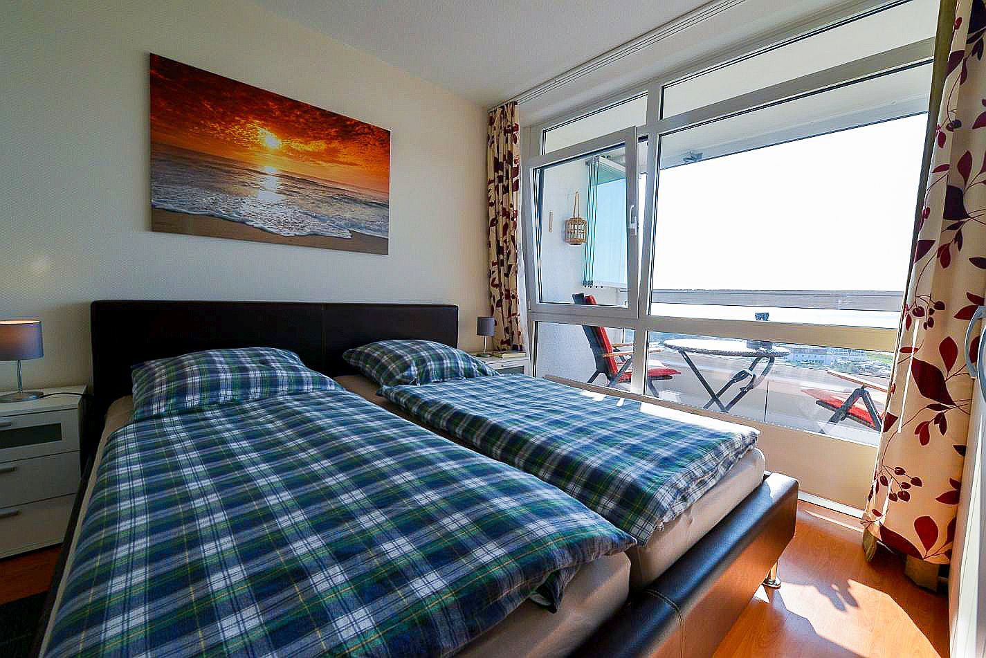 Für die Zeit nach langen Strandtagen bietet sich der überdachte und verglaste Westbalkon, der sich komplett öffnen lässt, dazu an, den Abend an der Meeresluft ausklingen und die Blicke, vom 14. Stock aus, über das Meer schweifen zu lassen.