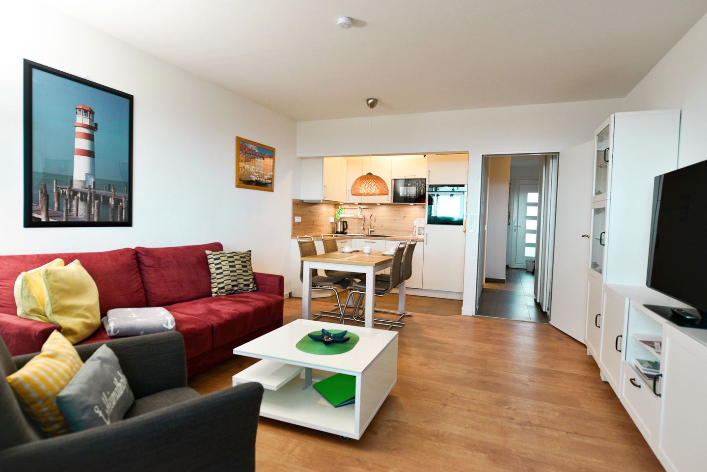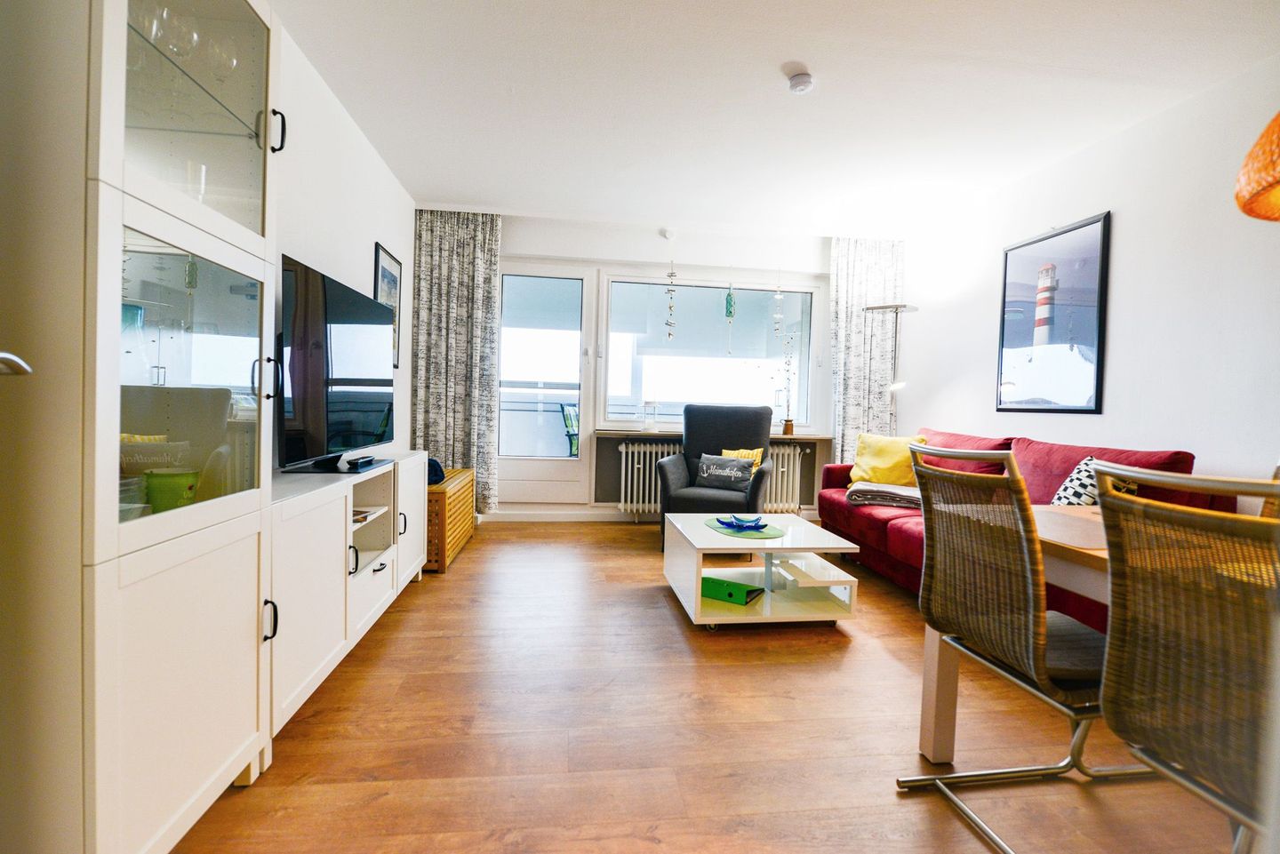 Die 45 m² große Ferienwohnung AS07 im Haus Am Sahlenburger Strand in Cuxhaven liegt direkt am Meer und bietet eine wunderschöne Seesicht über das Wattenmeer bis zur Insel Neuwerk. Vom verglasten, zu öffnenden Balkon genießen Sie den freien Blick aufs Meer, beobachten Kitesurfer, Reiterkutschen und vorbeiziehende Schiffe. Die helle Wohnung ist modern und komfortabel eingerichtet – mit Küchenzeile, kostenlosem WLAN, TV und einem Schlafzimmer mit zwei gemütlichen Einzelbetten. Ein Schwimmbad im Haus sowie ein Parkplatz direkt vor dem Gebäude sorgen für zusätzlichen Komfort. In der Saison bietet ein Bäcker im Haus frische Brötchen für Ihr Frühstück. Wald, Meer und Heide liegen in unmittelbarer Nähe und laden zu Spaziergängen, Fahrradtouren und Naturerlebnissen ein. Um allen Gästen eine 100 % rauchfreie Unterkunft zu garantieren, ist das Rauchen auch auf dem Balkon nicht gestattet. Diese Ferienwohnung bietet Entspannung pur – mit direkter Seesicht und bester Lage in Cuxhaven-Sahlenburg.