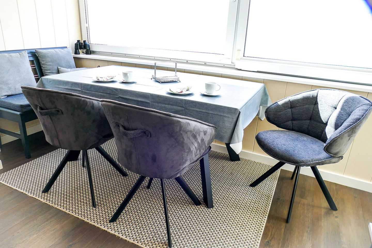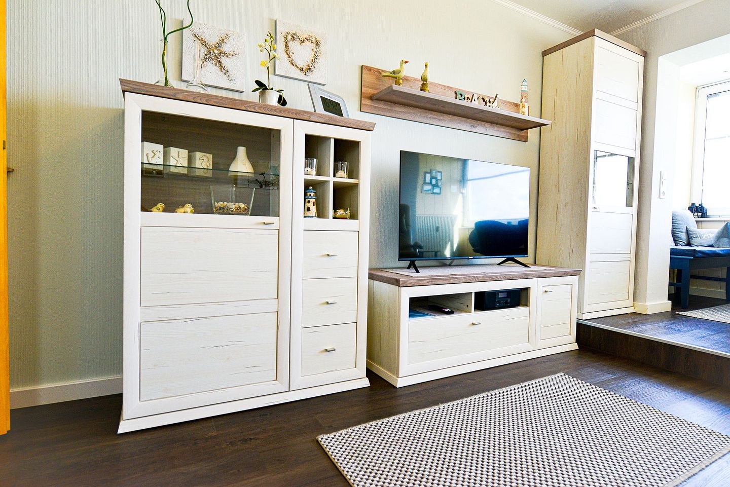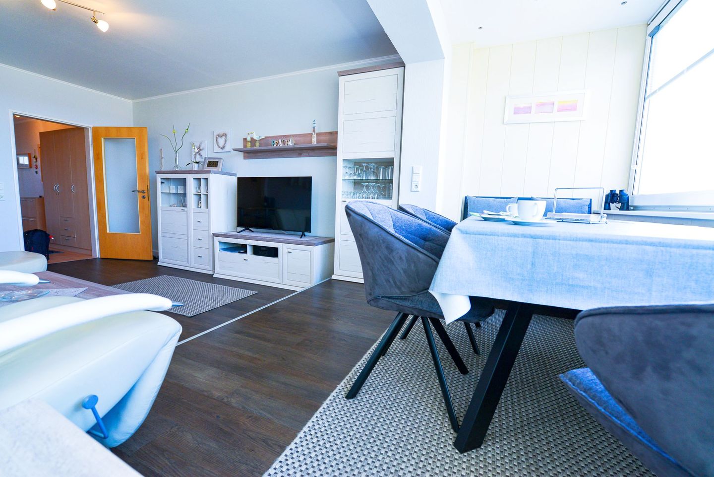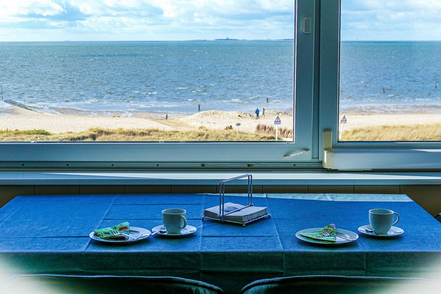 Das angenehme Wohlgefühl der Ferienwohnung wird durch die vollwertige und moderne Einrichtung unterstrichen. So ist von der vollausgestatteten Küchenzeile bis zum Fernseher alles gegeben, was man im Urlaub benötigt, um sich ganz dem Urlaub zu widmen und die große verglaste Fensterfront beschert Ihnen sonnige Stunden in der Ferienwohnung. Die große verglaste Fensterfront, die sich komplett öffnen lässt, sorgt dafür, dass Sie stets von bester Meeresluft umgeben sind und bietet Ihnen einen erstklassigen Panoramablick aufs Meer und die Insel Neuwerk.