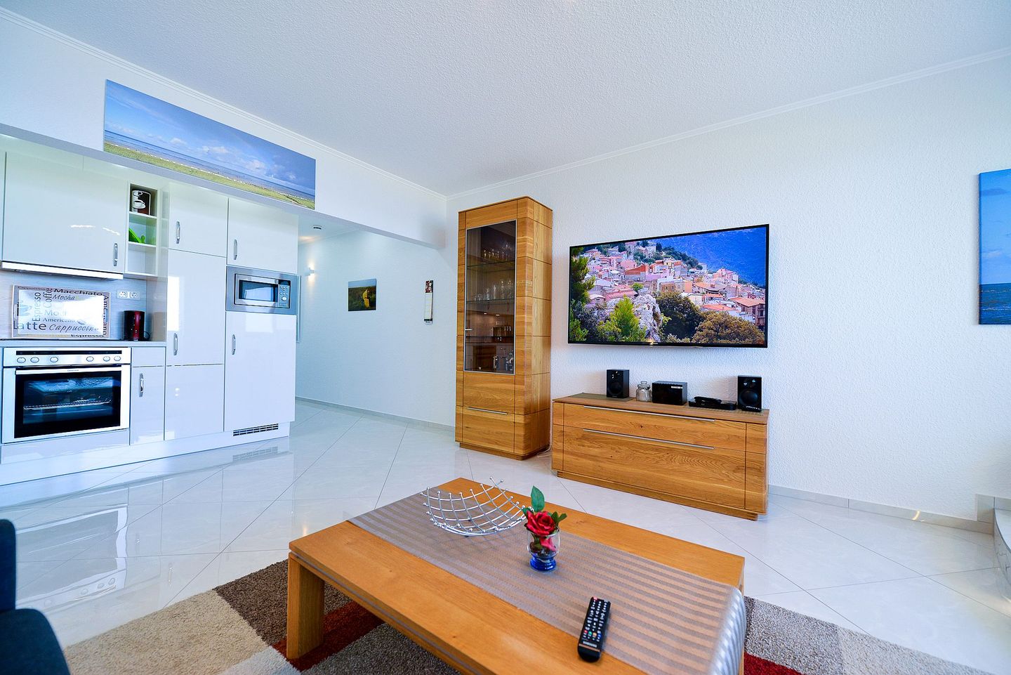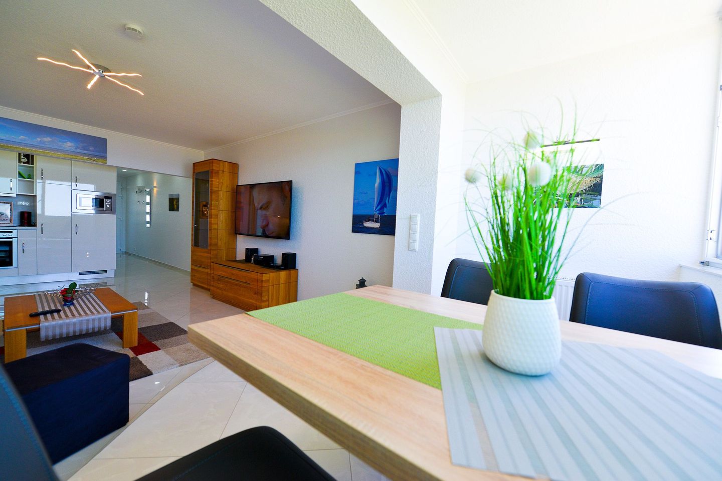 Das angenehme Wohlgefühl der Ferienwohnung wird durch die vollwertige und moderne Einrichtung unterstrichen. So ist von der vollausgestatteten Küchenzeile bis zum Fernseher alles gegeben, was man im Urlaub benötigt, um sich ganz dem Urlaub zu widmen.