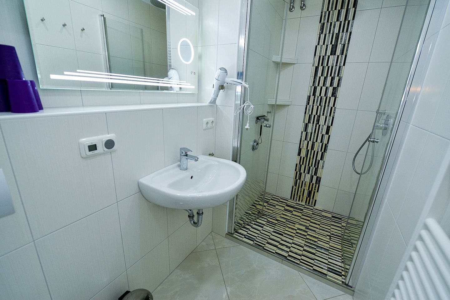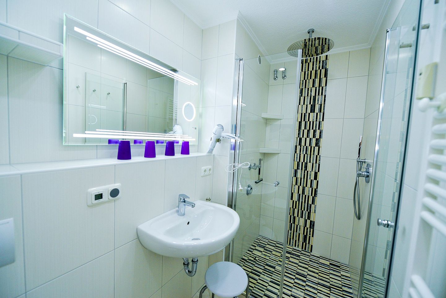 Erholung und Wellness bieten nicht nur das im Haus integriert Schwimmbad, sondern auch das neue Bad mit Regendusche und Radio.