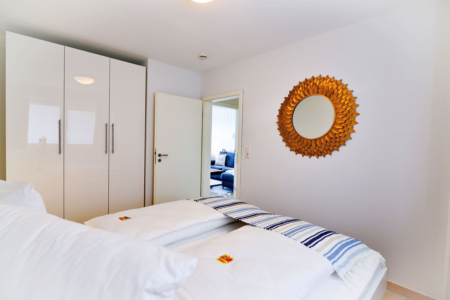 Die helle, modern eingerichtete Ferienwohnung liegt im beliebten Haus Am Waldbad in der Wernerwaldstraße, nur ca. 300 m vom Strand entfernt. Auf rund 50 m² bietet sie Platz für bis zu 4 Personen mit zwei separaten Schlafzimmern. Vom Balkon im 3. Stock genießen Sie einen schönen Blick Richtung Meer und lassen den Tag entspannt ausklingen.