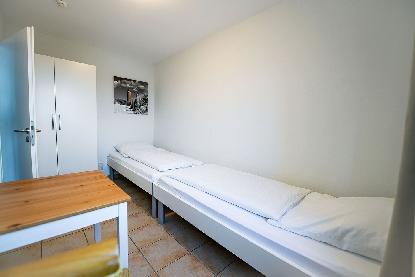 Auf ca. 50 m² Wohnfläche bietet die helle, modern eingerichtete Ferienwohnung Platz für bis zu 4 Personen. Zwei separate Schlafzimmer sorgen für Komfort und Privatsphäre. Der Balkon im 3. Obergeschoss bietet einen schönen Blick Richtung Meer und lädt zum Entspannen ein.