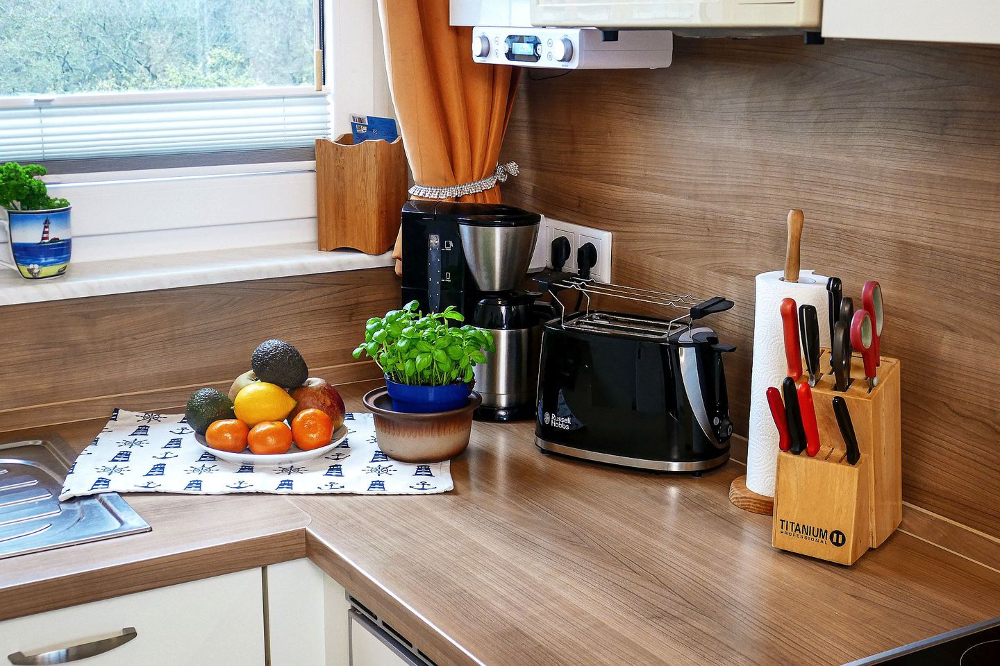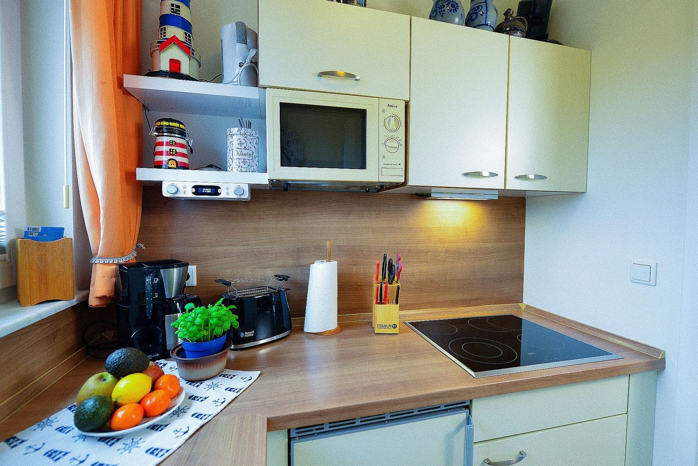 Zur Ausstattung gehören ein separates Schlafzimmer, eine voll ausgestattete Küchenzeile mit Ceranfeld, Mikrowellen-Backofen-Kombi und Kühlschrank, ein modernes Tageslichtbad mit Dusche sowie ein Wohnbereich mit Flachbild-TV.