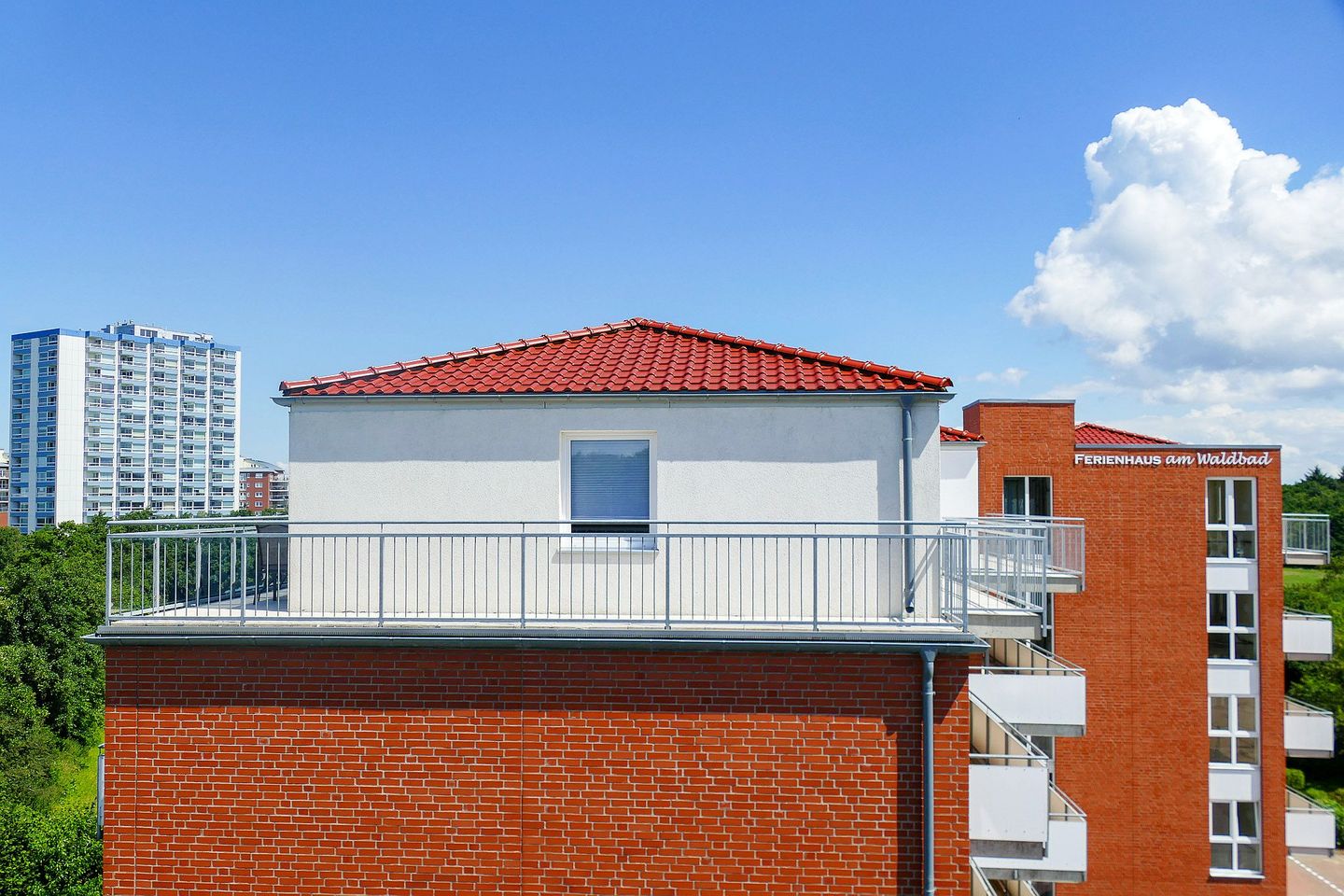 Ein echtes Highlight ist der große Dachterrassenbalkon in Süd-West-Ost-Ausrichtung. Ob beim Frühstück mit Blick in den Himmel oder beim Abendessen bei frischer Meeresluft – dieser Platz macht jeden Moment besonders.