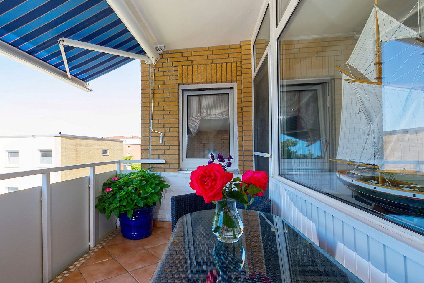 Die Wohnung überzeugt durch eine großzügige Dachterrasse mit Sonnenmarkise, neuwertigem Strandkorb, Liegen, großem Esstisch mit Stühlen sowie einem eigenen Wasseranschluss – ideal auch als Hundedusche. Ein überdachter Balkon mit Blick auf den Wernerwald bietet zusätzlichen Raum zum Entspannen.