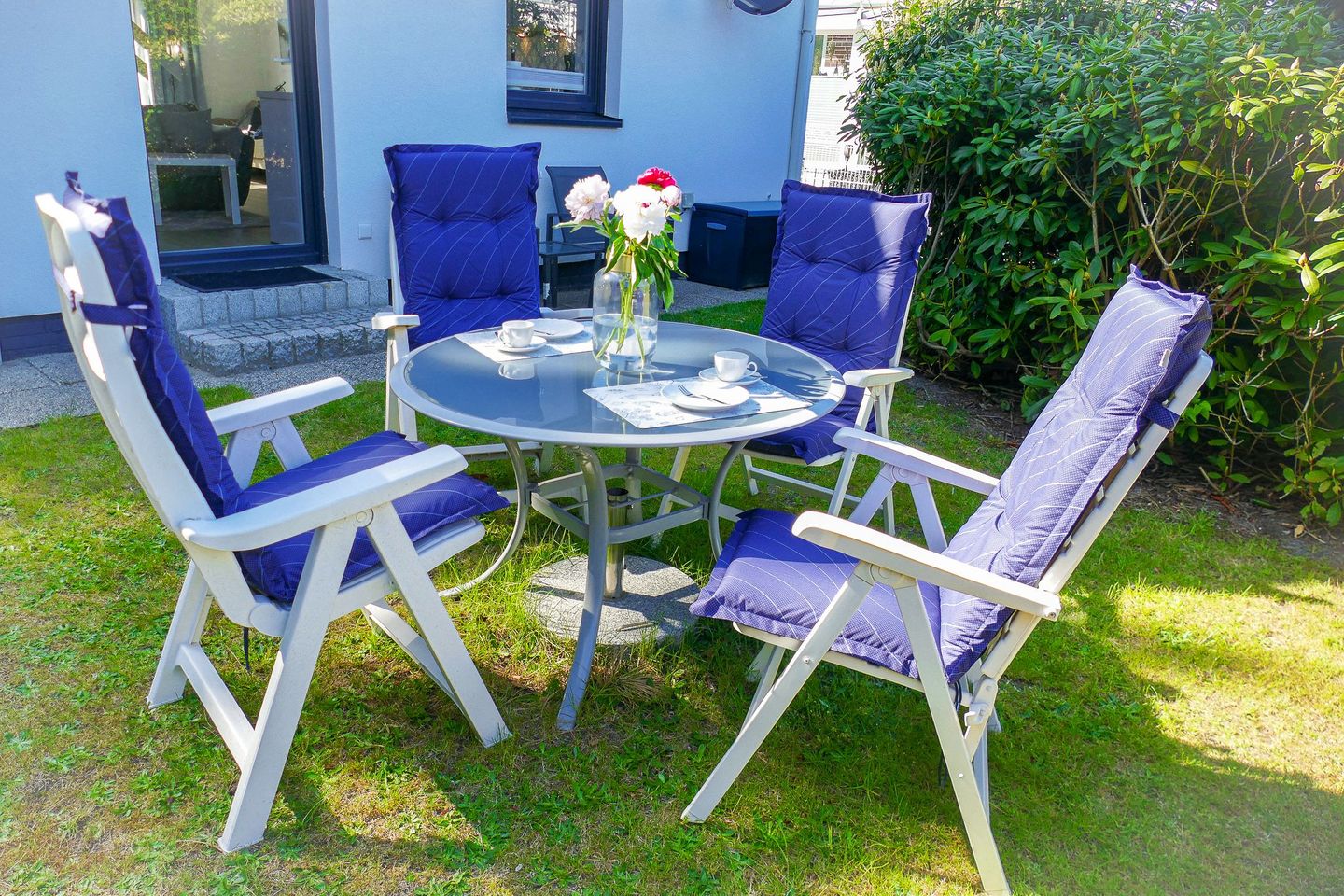 Die liebevolle Einrichtung, klare Raumaufteilung und der eingewachsene Garten mit möblierter Terrasse bieten ein perfektes Ambiente für Erholung. Ob Sonne tanken, grillen oder lesen – hier fühlt man sich sofort zuhause. Ein Grill und ein abschließbarer Fahrradschuppen stehen zur Verfügung – ideal für aktive Urlauber.