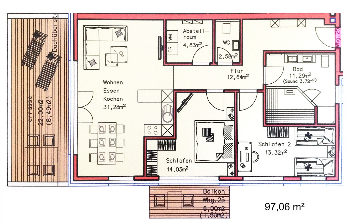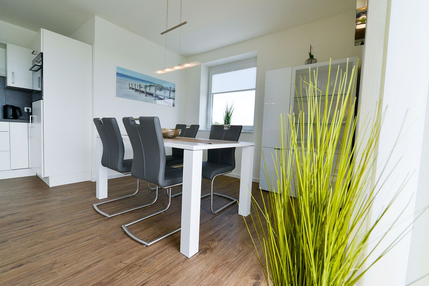 Ihr exklusives Feriendomizil erwartet Sie im 4. Stock des Haus Hohe Geest, auch als Quartier Hohe Geest bekannt, in Cuxhaven-Sahlenburg. Auf 97 m² lichtdurchfluteter Wohnfläche genießen Sie modernes Design, hochwertige Ausstattung und viel Raum zum Wohlfühlen. Die 26 m² große Süd-Dachterrasse mit seitlichem Meerblick und Fernblick in die Natur lädt zum Sonnen, Entspannen und Genießen ein. Das Tageslichtbad mit eigener kostenfreier Sauna, Fußbodenheizung in allen Räumen, zwei Smart-TVs, WLAN und eine voll ausgestattete Küche bieten besten Komfort. Waschmaschine, Trockner, Aufzug und ein Tiefgaragenstellplatz (Nr. 25) sind selbstverständlich vorhanden. Nur wenige Minuten vom Strand entfernt, umgeben von Heide, Wald, Dünen und Meer, erleben Sie hier Ruhe, Stil und Erholung auf höchstem Niveau. Bäcker und Restaurants liegen in der Nähe – Ihr Ort für Luxus und Nordseeflair.