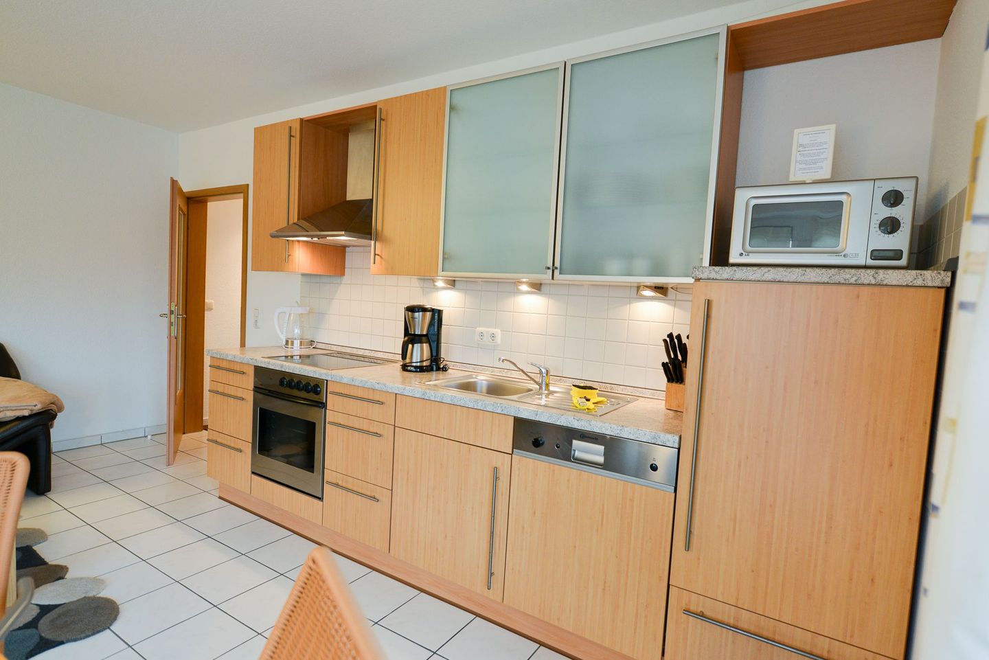 In der modernen und voll ausgestatteten Küchenzeile lassen sich köstliche Gerichte zubereiten, die Ihnen, mit einer frischen Meeresbrise garniert, den Urlaub versüßen. Der gemütliche Wohnbereich mit Flatscreen und der schöne, umherlaufende Südostbalkon bieten Ihnen viel Raum zum Entspannen und Erholen, wenn der lange Strandtag sich langsam dem Ende zuneigt.