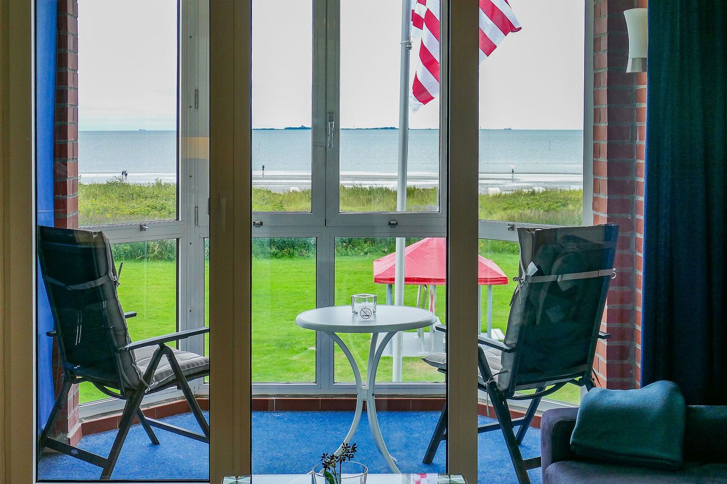Diese schön eingerichtete 43 m² große Wohnung im Haus Horizont 1 bietet Platz für bis zu 2 Personen und liegt direkt an der Strandpromenade in Cuxhaven-Sahlenburg. Vom verglasten, komplett zu öffnenden Westbalkon genießen Sie einen freien Blick auf die Nordsee und die Insel Neuwerk – wettergeschützt und dennoch ganz nah am Meer.