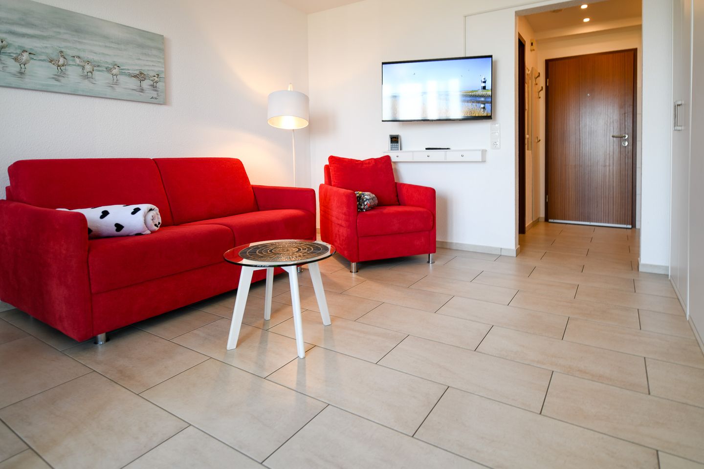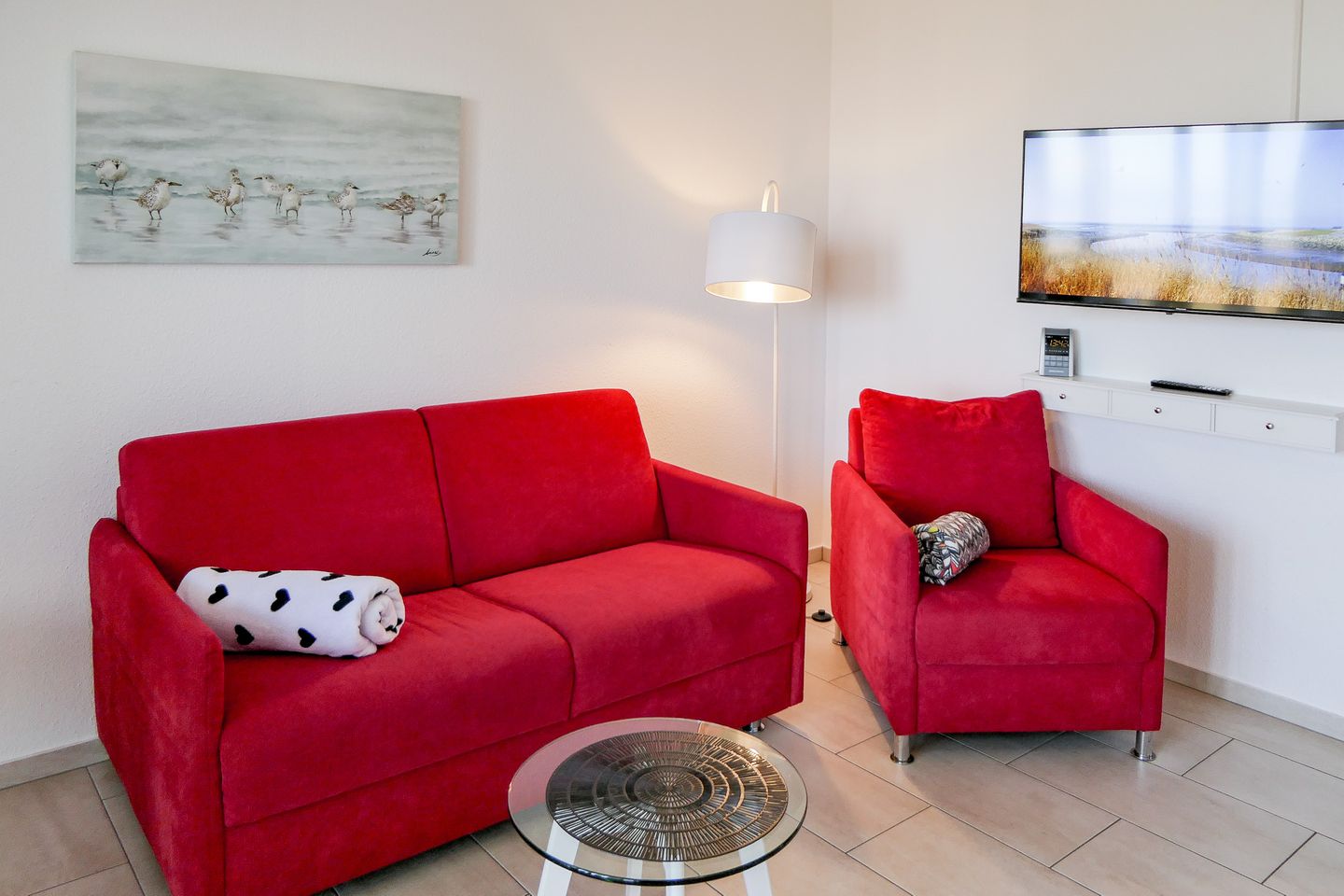 Die Wohnung verfügt über eine voll ausgestattete Küchenzeile mit Geschirrspüler, einen TV für gemütliche Abende sowie eine angenehme Fußbodenheizung – ideal auch für die kühleren Tage. Ein Stellplatz (Nr. 5) befindet sich direkt am Haus. Im Gebäude steht eine neu gestaltete Sauna mit Ruheraum zur Verfügung (gegen Gebühr). Ein Aufzug ist vorhanden; bitte beachten Sie, dass je nach Lage der Wohnung auf der Etage einige wenige Stufen zu Fuß zurückzulegen sind. – ruhig, strandnah, mit direkter Seesicht.