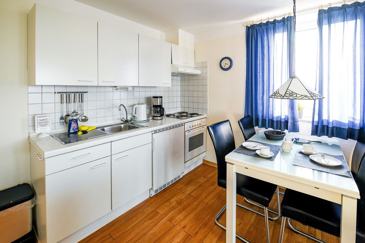 Die modern ausgestattete Ferienwohnung verfügt über eine praktische Küchenzeile, ein helles Tageslichtbad mit Dusche und WC, ein Schlafzimmer sowie einen gemütlichen Wohnbereich mit Flatscreen-TV und Schlafsofa. An kühleren Tagen sorgt die Fußbodenheizung für Wohlfühlatmosphäre. Kostenloses WLAN und ein eigener Stellplatz (Nr. 10) direkt am Haus sind inklusive.