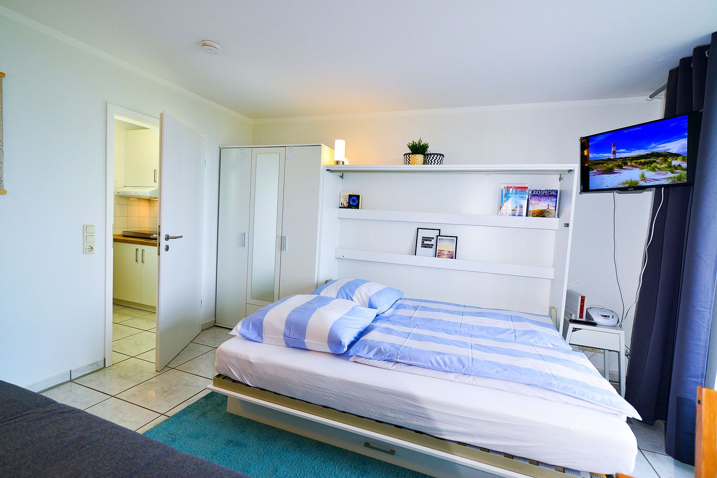 Die Wohnung verfügt über eine voll ausgestattete Küchenzeile, einen TV für gemütliche Abende sowie eine angenehme Fußbodenheizung – ideal auch für die kühleren Tage. Ein Stellplatz (Nr. 14 ) befindet sich direkt am Haus. Im Gebäude steht eine neu gestaltete Sauna mit Ruheraum zur Verfügung (gegen Gebühr). Ein Aufzug ist vorhanden; bitte beachten Sie, dass je nach Lage der Wohnung auf der Etage einige wenige Stufen zu Fuß zurückzulegen sind. – ruhig, strandnah, mit direkter Seesicht.