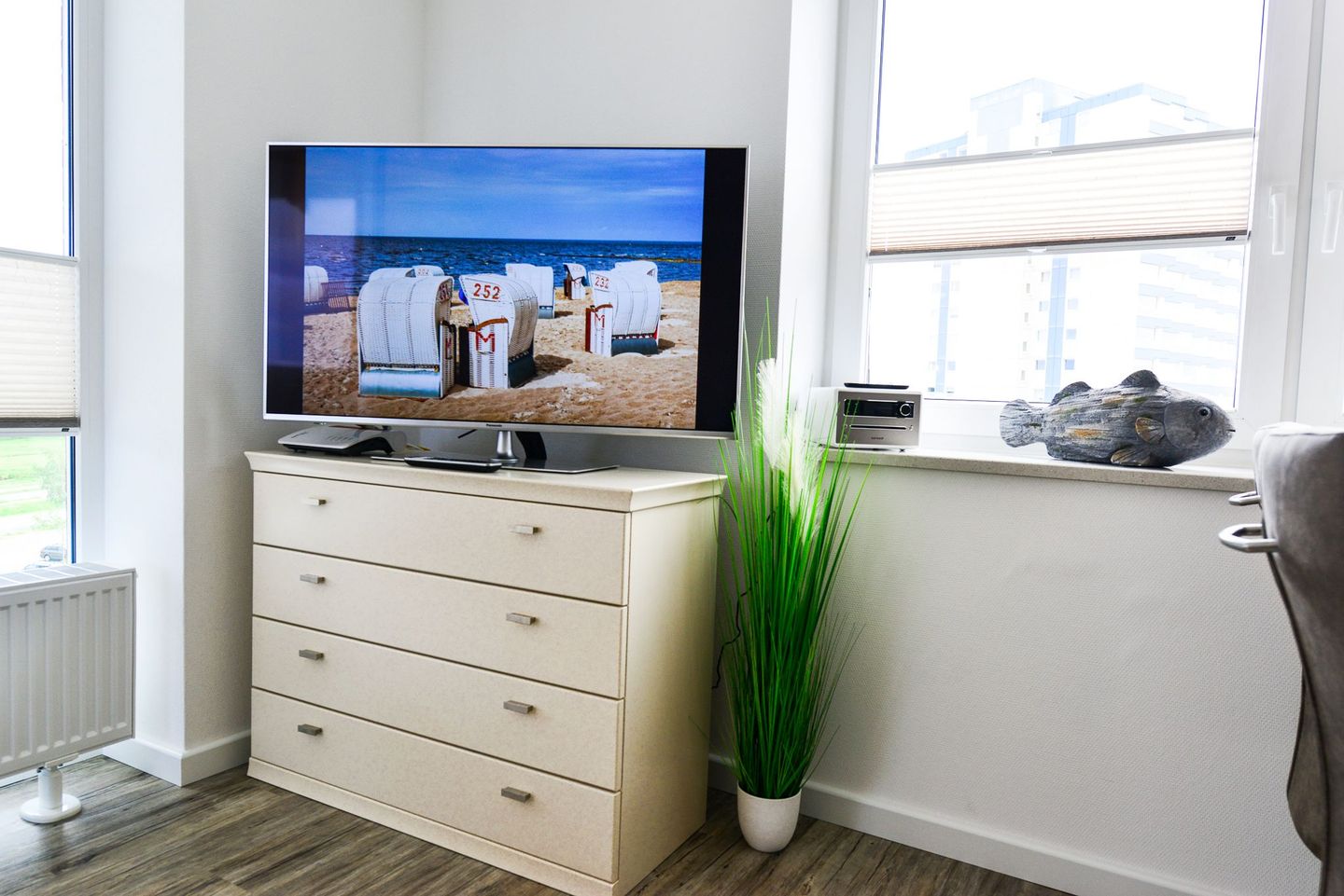 * Einen gemütlichen Wohnbereich mit Kabel-TV, ideal zum Entspannen nach einem Tag am Strand.