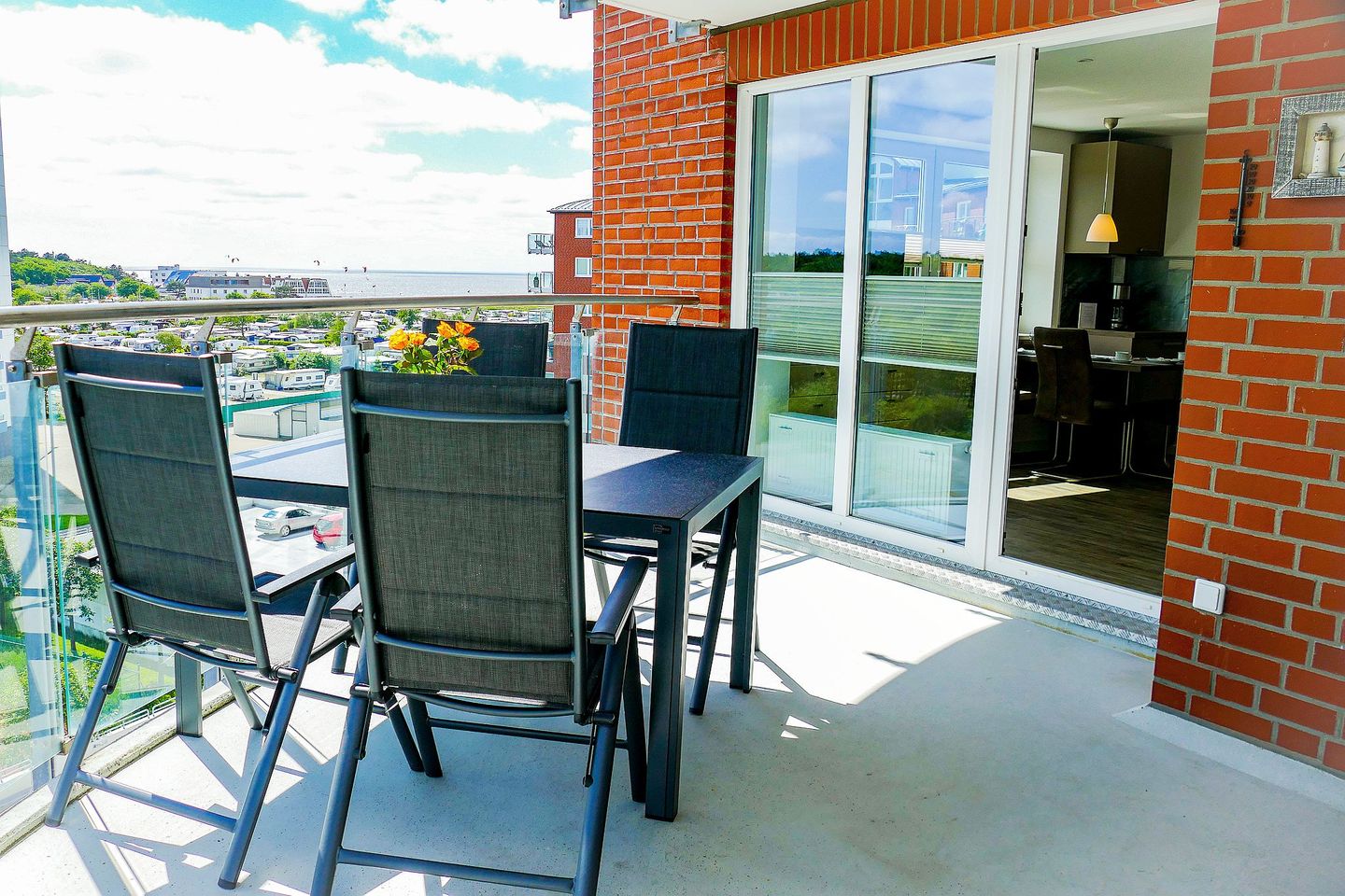 Für erholsame und schöne Stunden, nach einem langen Tag am Meer, eignet sich der überdachte Dachterrassenbalkon, der Ihnen auch nach Ihrem Urlaub noch lange in Erinnerung bleiben wird.