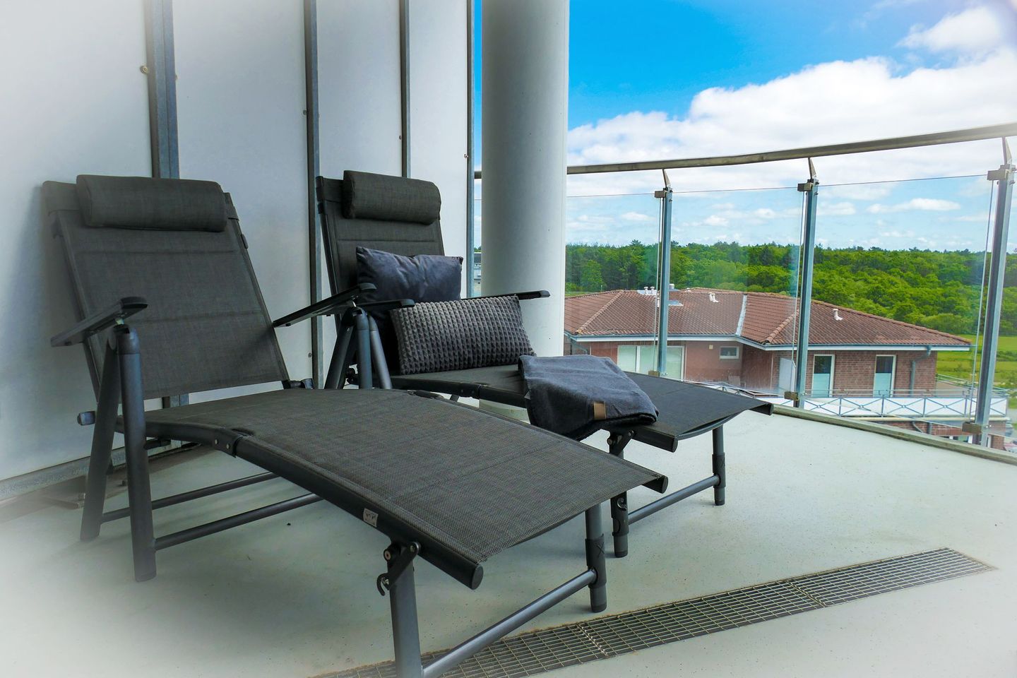 * Einen eigenen Balkon, auf dem Sie – je nach Lage – einen atemberaubenden Blick auf das Meer genießen können.
