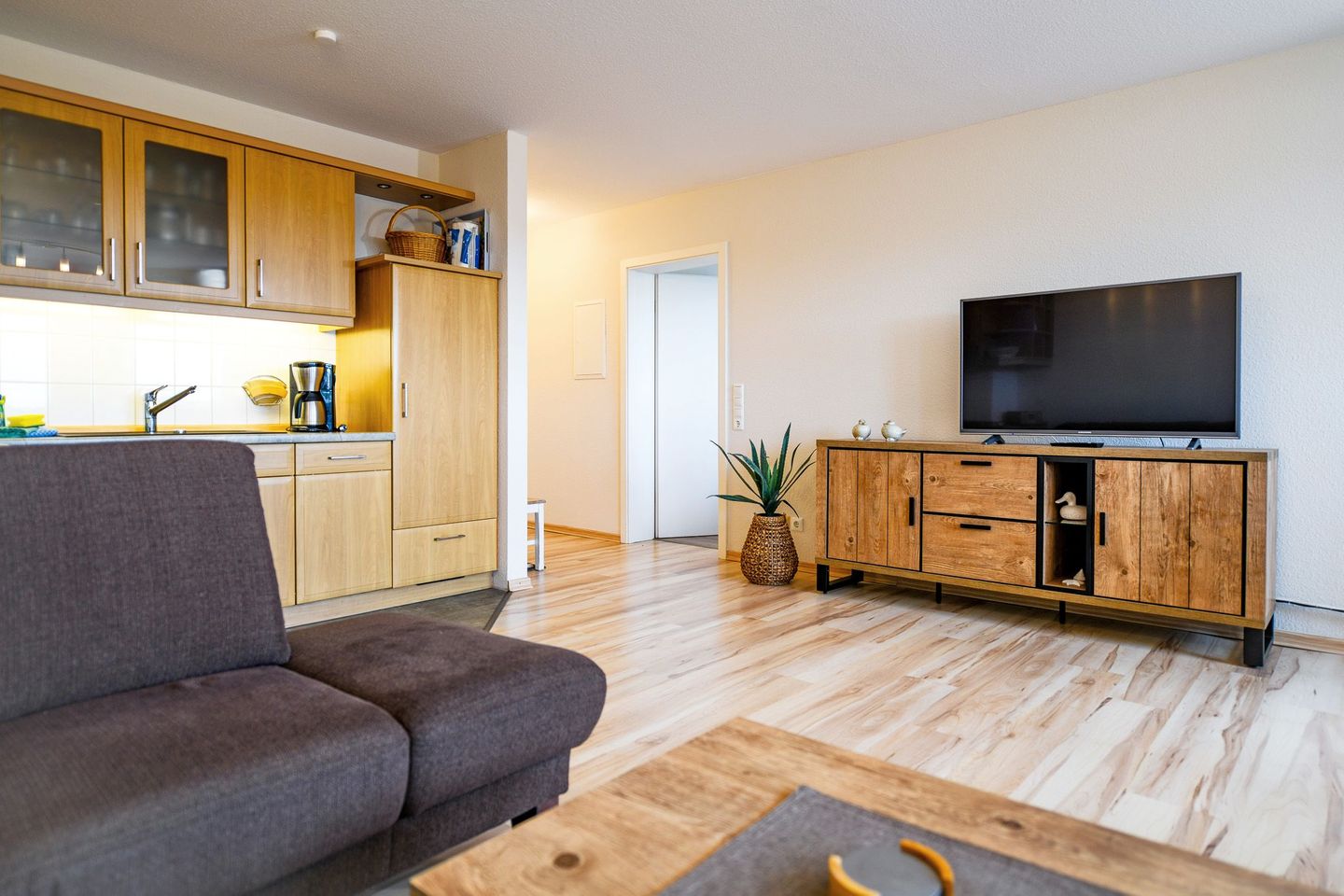 * Einen gemütlichen Wohnbereich mit Kabel-TV, ideal zum Entspannen nach einem Tag am Strand.