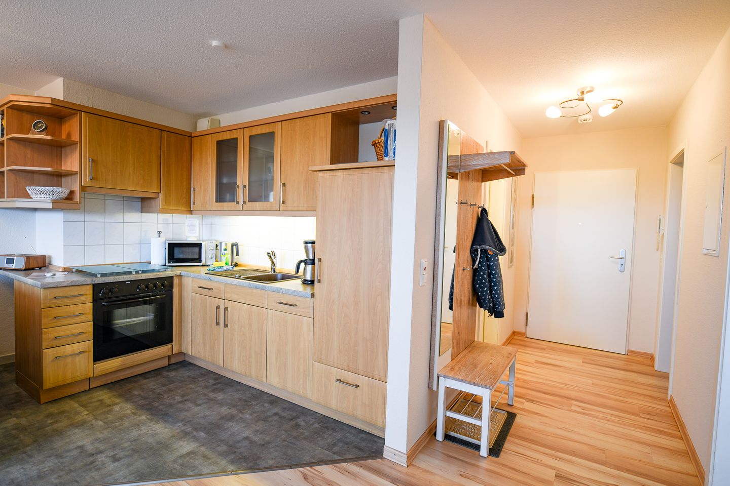 In der 6. Etage des Hauses Nordseebrandung erwartet Sie eine helle, moderne Ferienwohnung mit überdachtem Balkon und Teilseesicht. In Top-Lage, nur ca. 200 m vom Strand entfernt, genießen Sie Ruhe und beste Voraussetzungen für erholsame Tage. Die Küchenzeile ist voll ausgestattet, der Wohnbereich lädt mit großem TV zu entspannten Abenden ein. Das Bad verfügt über eine ebenerdige Dusche. WLAN und Parkplatz sind kostenfrei. Direkt vor der Tür: Meer, Heide, Wald sowie Rad- und Wanderwege. Ein Bäcker befindet sich im Haus. Keine Haustiere – die Wohnung ist tierfrei und ideal für Allergiker. Zwei Schlafzimmer: eins mit Doppelbett, TV und Balkonzugang, das andere mit Etagenbett, separatem Zugang und Schiebetür zum ersten Zimmer.