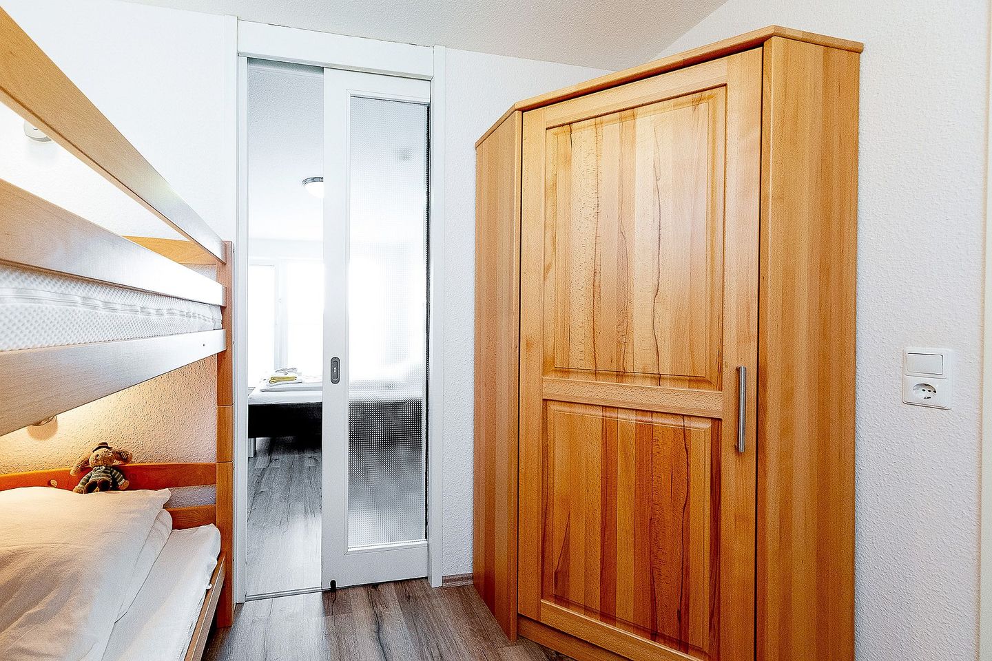 Zwei Schlafzimmer sorgen für Komfort: Ein Schlafzimmer ist über eine Schiebetür mit dem Elternschlafzimmer verbunden und verfügt zusätzlich über eine separate Tür zum Flur – ideal für Familien oder flexible Nutzung.