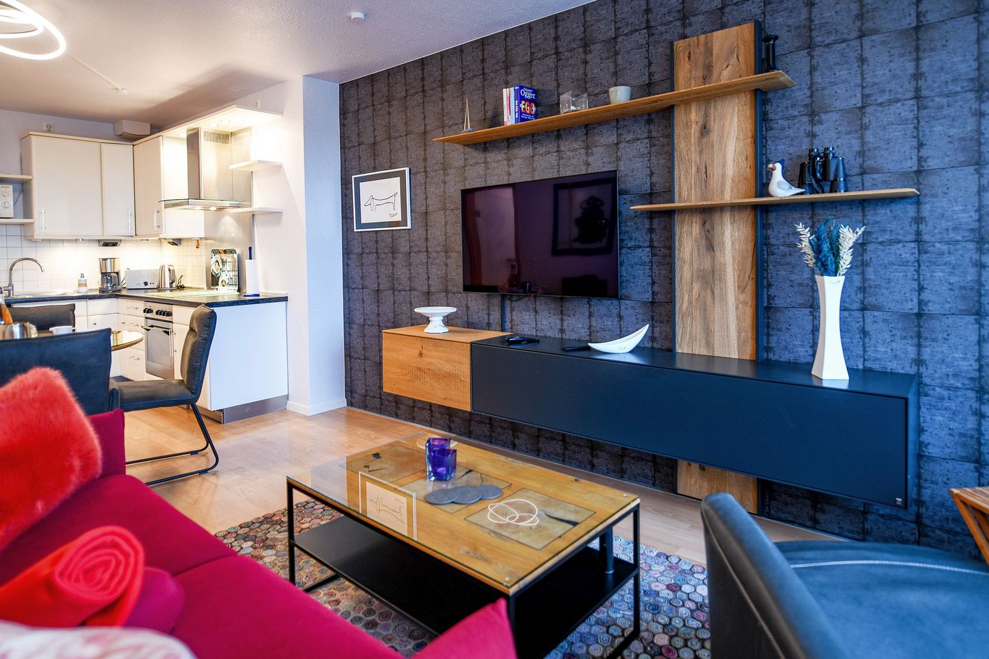 * Einen gemütlichen Wohnbereich mit Kabel-TV, ideal zum Entspannen nach einem Tag am Strand.