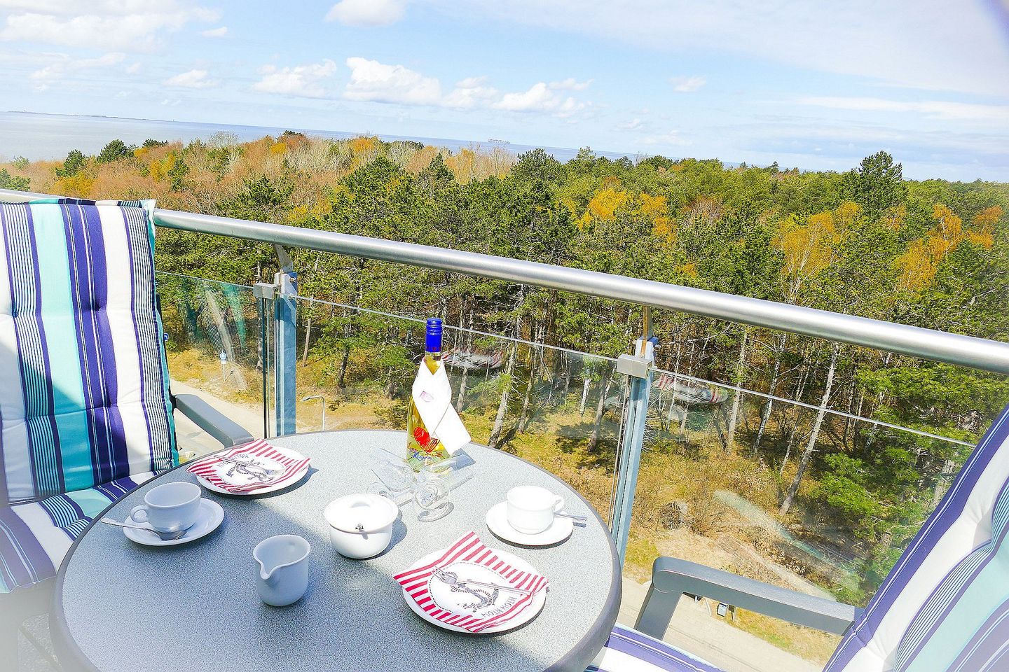 * Einen eigenen Balkon, auf dem Sie – je nach Lage – einen atemberaubenden Blick auf das Meer genießen können.