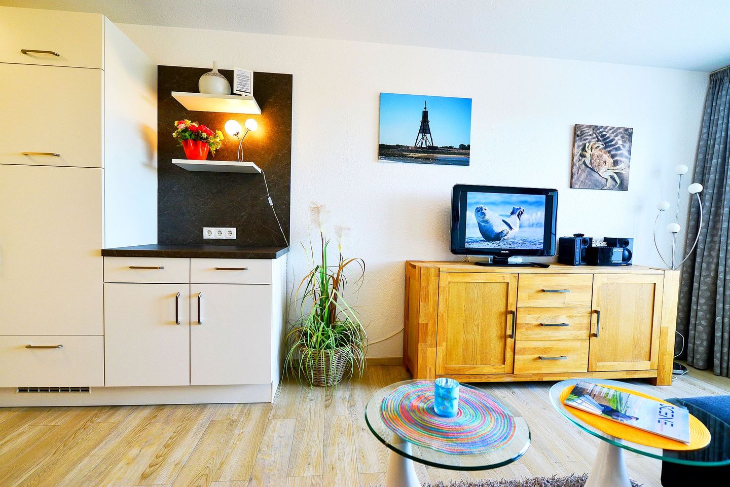 * Einen gemütlichen Wohnbereich mit Kabel-TV, ideal zum Entspannen nach einem Tag am Strand.