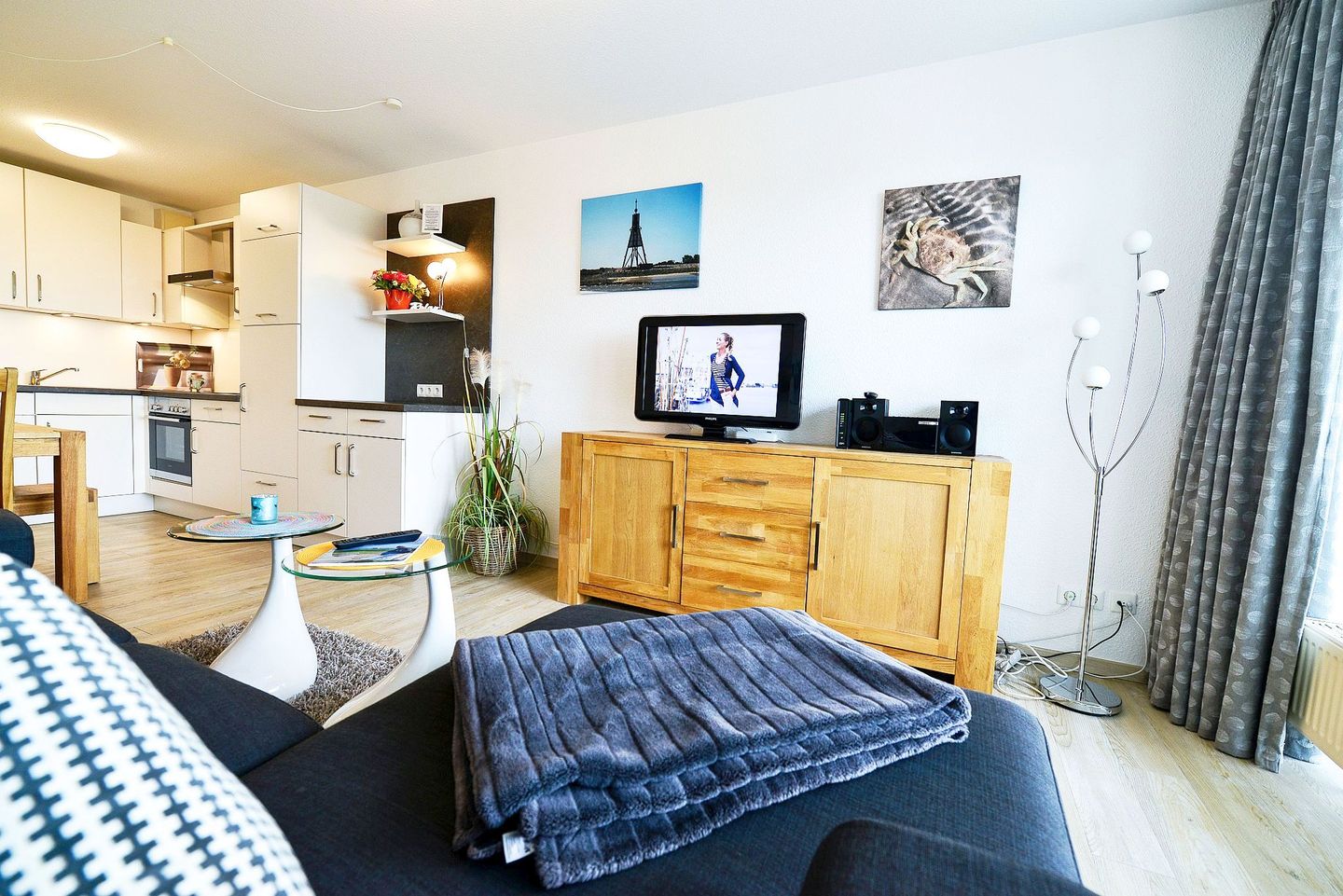 Genießen Sie ein entspanntes Dinner an der Meeresluft, welches sich in der vollwertig ausgestatteten Küche zubereiten lässt und entspannen Sie bei einem gemütlichem TV-Abend.