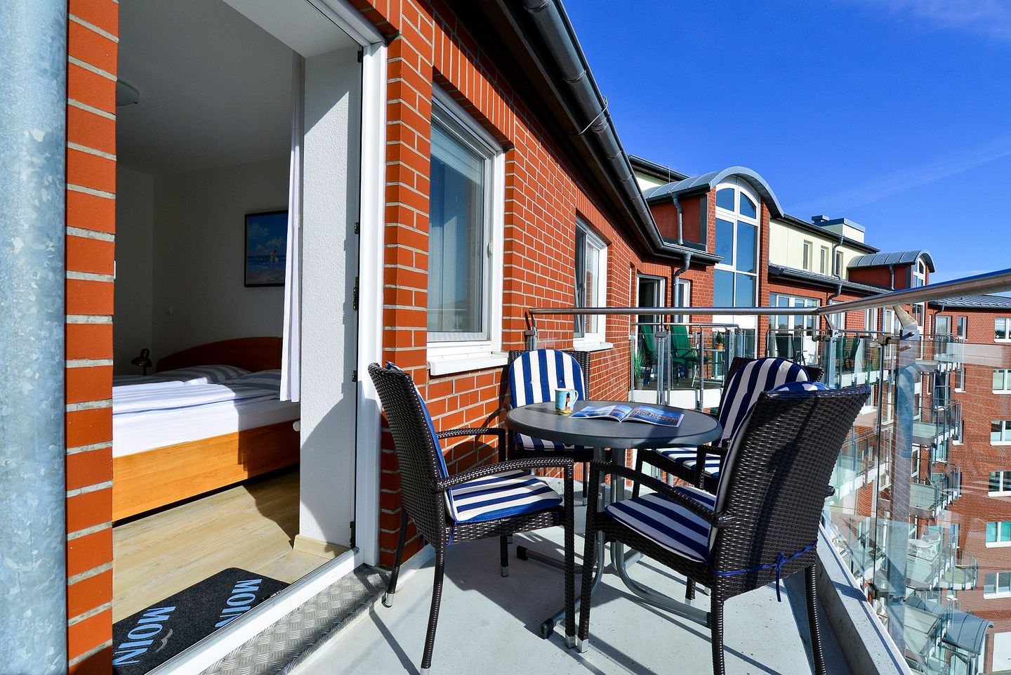 Besonders zu empfehlen sind die beiden Balkone, von denen einer einen seitlichen Blick aufs Meer und die Insel Neuwerk ermöglichen. Hier kann man ganz entspannt lange Urlaubstage am Strand ausklingen lassen.