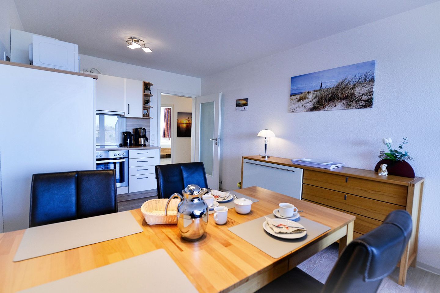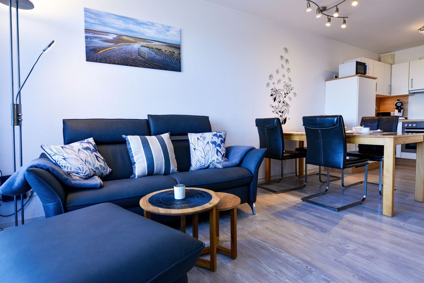 Eine schöne Zeit außerhalb der langen Tage am Strand lässt sich auf den 63m² dieser hochwertig eingerichteten Nordsee Ferienwohnung verbringen, die Sie einen Urlaub ohne Abstriche erleben lässt. Bis zu 4 Personen finden hier ein schönes Zuhause für den Urlaub an Meer und alles, was man dafür benötigt so lassen sich in der vollwertig ausgestatteten Küche leckere Gerichte zubereiten und auch langen TV-Abenden und Entertainment steht Dank des kostenlosen WLAN und der drei Flatscreen TVs im Wohnzimmer und in den Schlafräumen nichts im Wege.