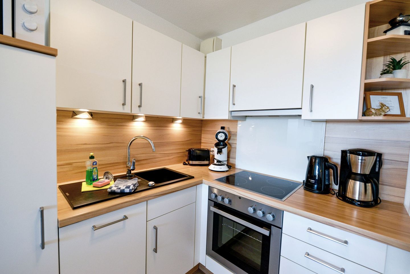* Eine voll ausgestattete Küchenzeile mit allem, was Sie für die Zubereitung Ihrer Mahlzeiten benötigen.