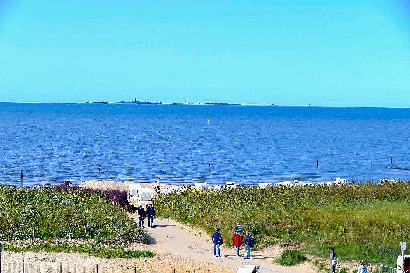 Die stilvolle Penthousewohnung im Haus Nordseebrandung in Cuxhaven-Sahlenburg liegt nur rund 200 Meter vom Strand entfernt und bietet eine traumhafte Aussicht auf den Schifffahrtsweg und die Insel Neuwerk – ideal für zwei Personen, die einen komfortablen und besonderen Nordseeurlaub verbringen möchten.