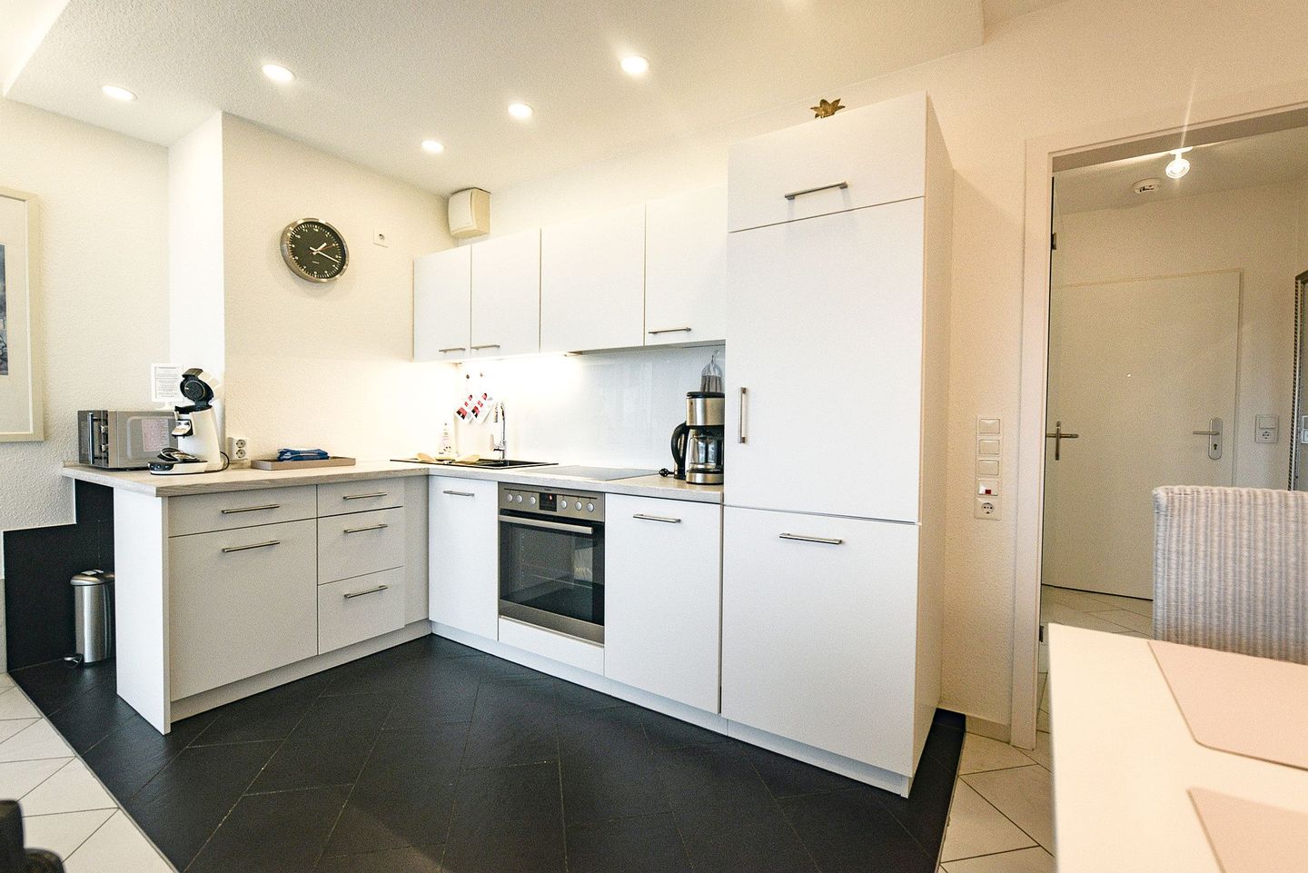 Ein echtes Highlight sind die zwei Balkone: Einer davon mit bequemer Liege lädt zum Sonnen, Lesen oder einfach nur Genießen des Meeresblicks ein. Die moderne Küchenzeile ist voll ausgestattet und bietet zusätzlich eine Senseo-Kaffeemaschine.