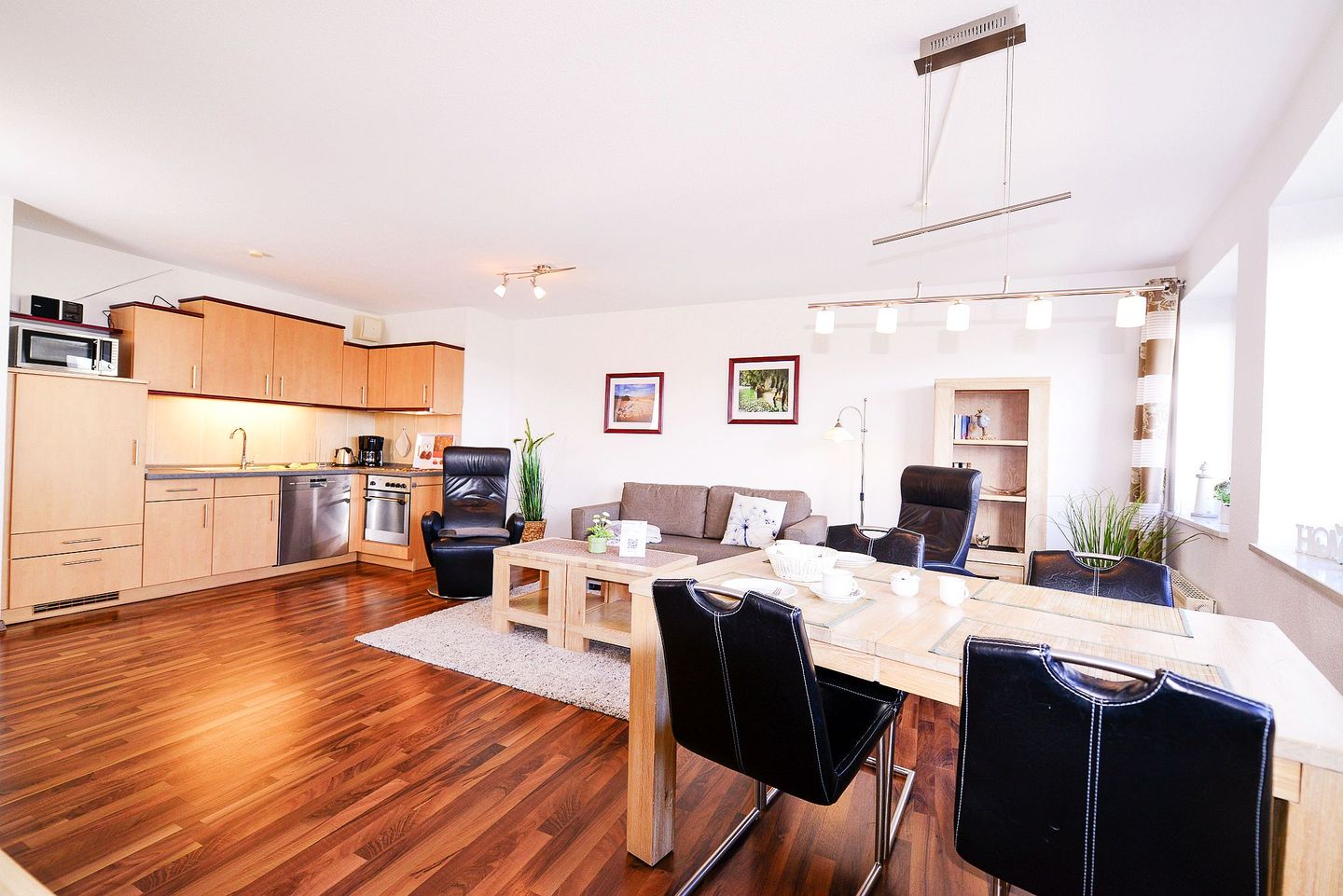 Auf 58 hellen und geschmackvoll eingerichteten Quadratmetern finden Nordseeurlauber in der Ferienwohnung ND42 im Haus Nordseebrandung ein komfortables Zuhause auf Zeit. Die Wohnung ist voll ausgestattet und bietet alles für eine erholsame Auszeit – vom modernen Bad mit ebenerdiger Dusche bis zur praktischen Küchenzeile für eigene Kochideen.