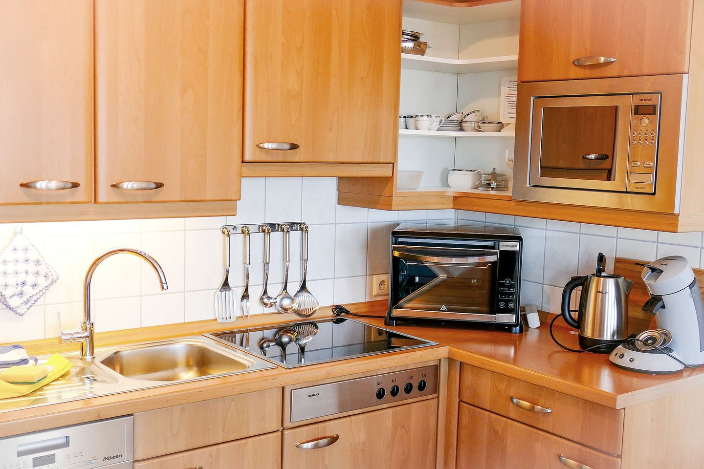 * Eine voll ausgestattete Küchenzeile mit allem, was Sie für die Zubereitung Ihrer Mahlzeiten benötigen.