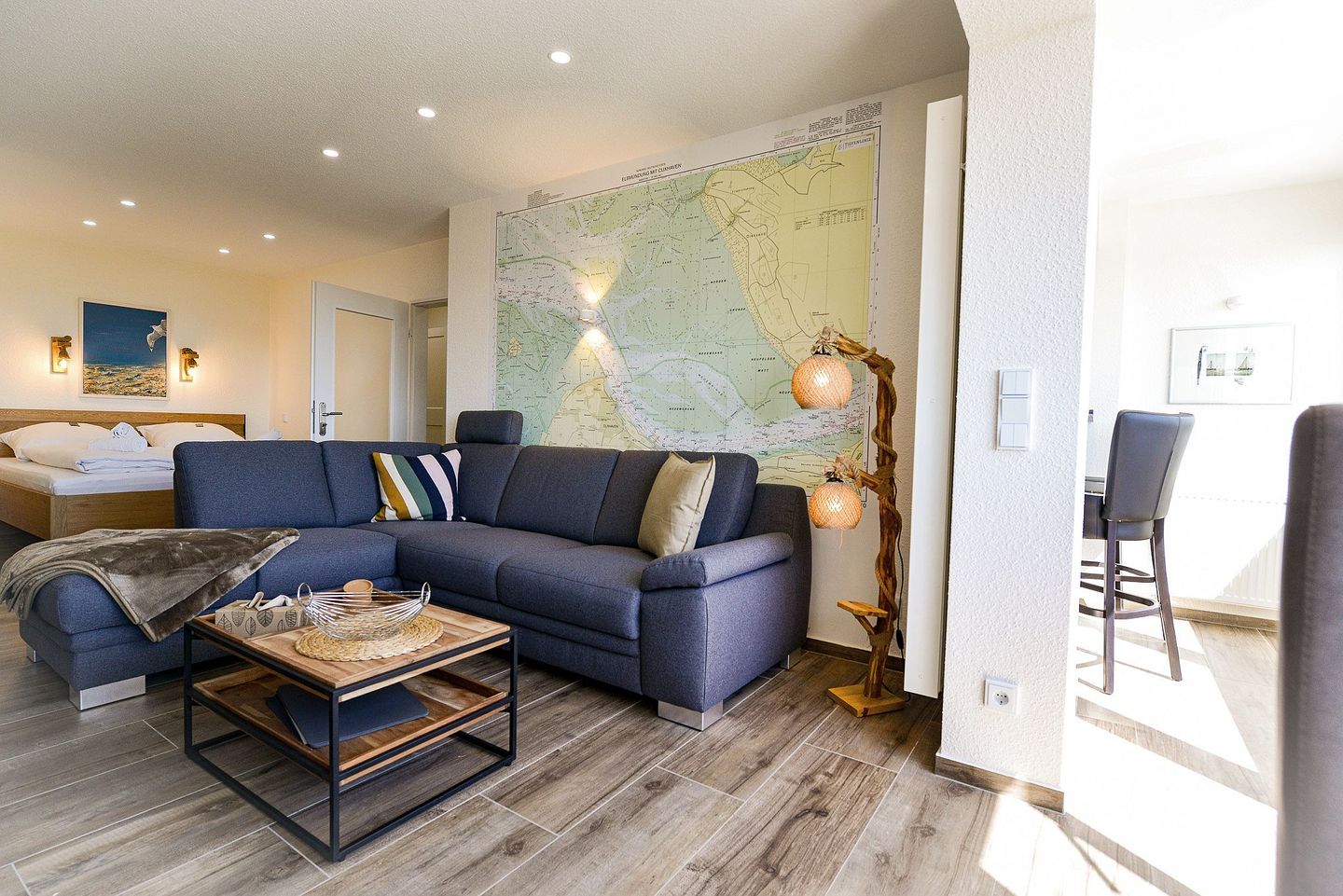 Die ca. 50m² große Ferienwohnung für 4 Personen begrüßt Sie mit modernem Flair, Schwimmbad, Sauna und viel Raum für einen entspannten Urlaub im schönen Norden Deutschlands - Meeresrauschen inklusive! Die lichtdurchflutete Ferienwohnung mit seitlicher Seesicht befindet sich in direkter Strandlage mit einer modernen, offenen und vollausgestatteten Küche, sodass Sie jeden Urlaubstag mit einem entspannten Frühstück am Meer beginnen können. Erholung während Ihres Strandurlaubs garantieren Ihnen, neben dem wunderbaren Sandstrand, die verglaste Südfensterfront zum Öffnen, das neue Bad mit einer Flachdusche, das Schwimmbad im eigenen Haus, sowie die Sauna, die gegen Gebühr genutzt werden kann. Die beiden Flatscreen TV´S und das kostenfreie Wlan garantieren gemütliche und entspannte TV Abende, um sich vom langen Strandtag zu erholen und einfach die Seele baumeln zu lassen.