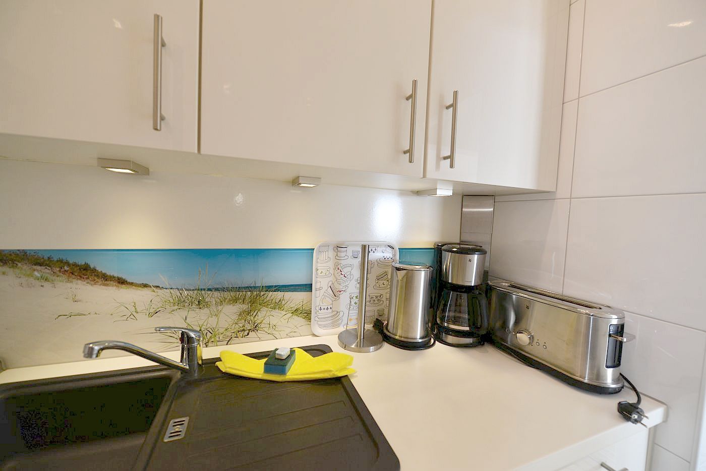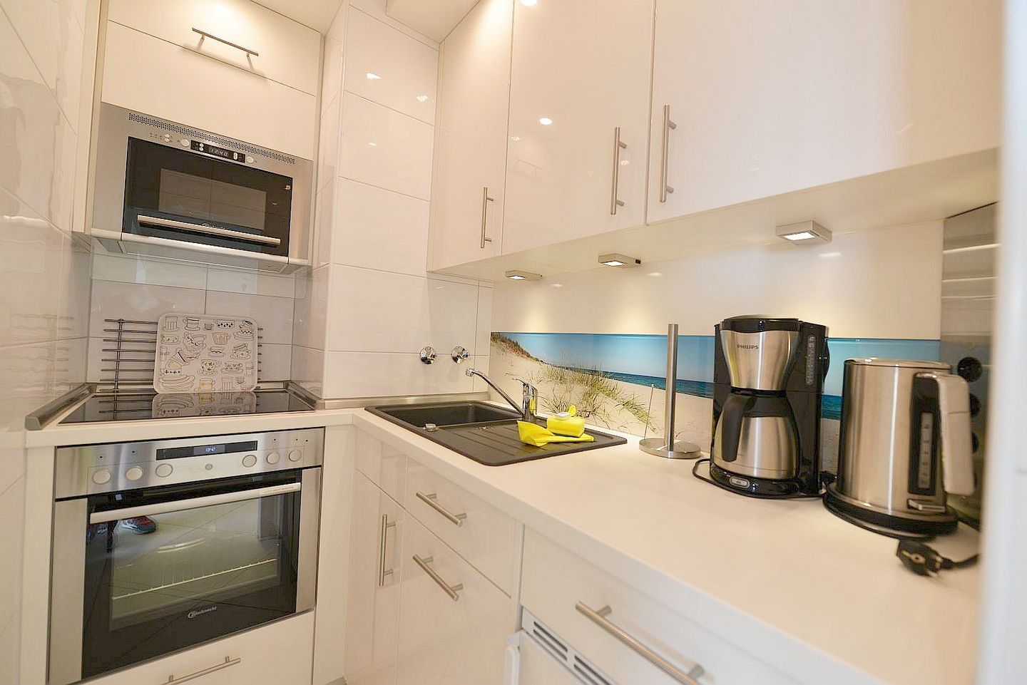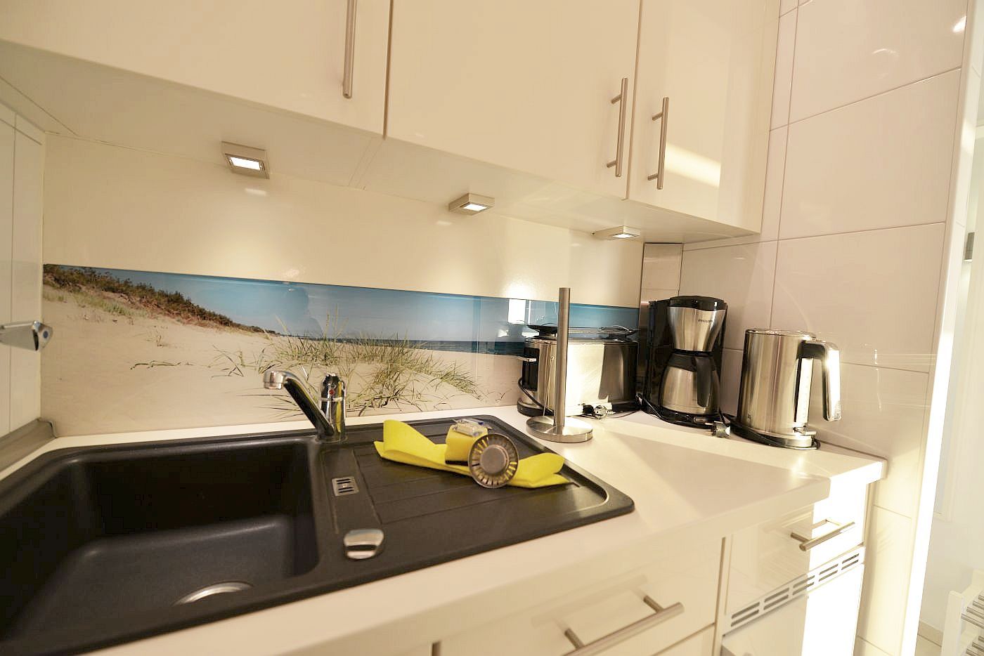 Die lichtdurchflutete Ferienwohnung befindet sich in unmittelbarer Strandlage und bietet Ihnen eine hochmoderne Ausstattung mit einer modernen, offenen und vollausgestatteten Küche, sodass Sie jeden Urlaubstag mit einem entspannten Frühstück mit direktem Blick auf Meer beginnen können.