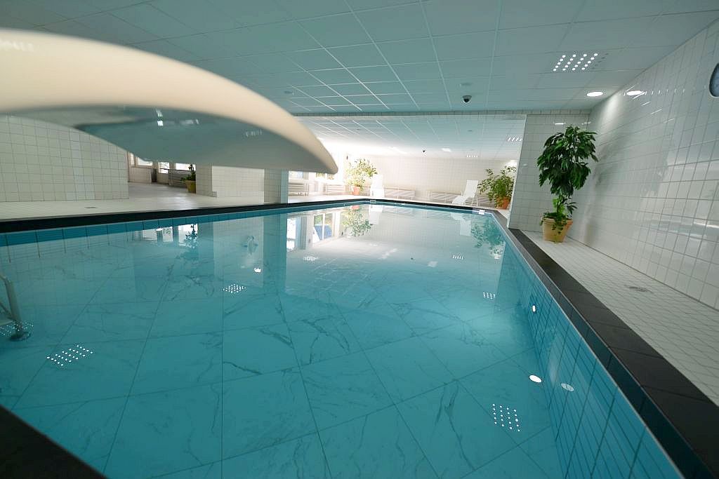 Schwimmhalle im Haus: 12 × 6,5 m großes Becken mit 1,35 m Tiefe – ideal für sportliches Schwimmen und entspannte Stunden, unabhängig vom Wetter