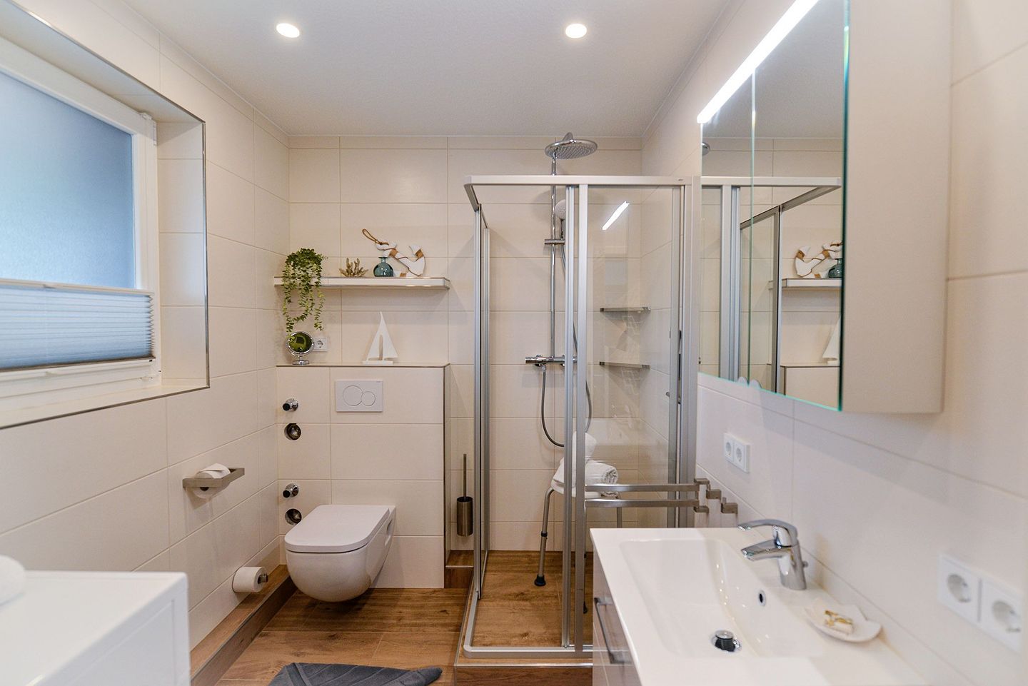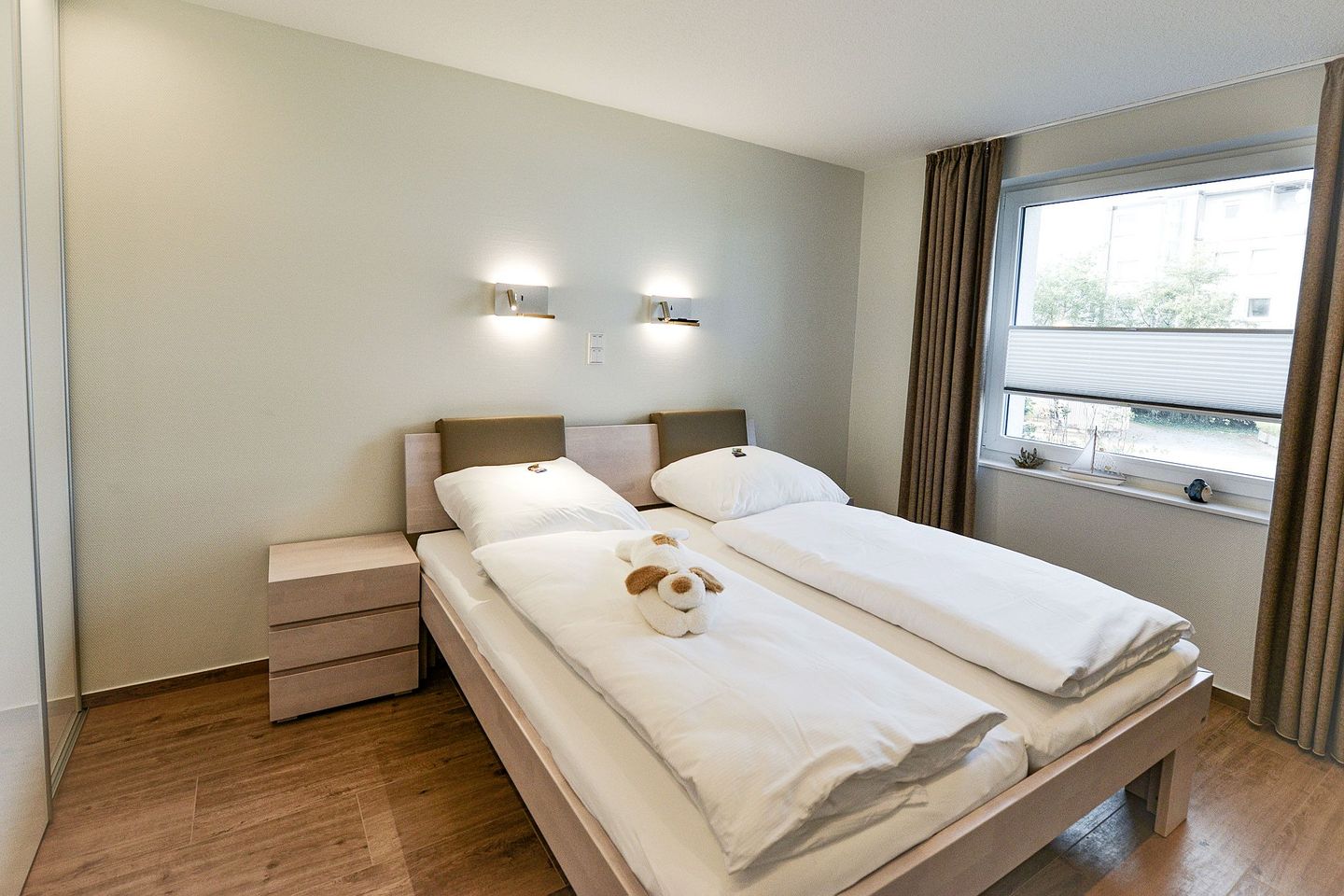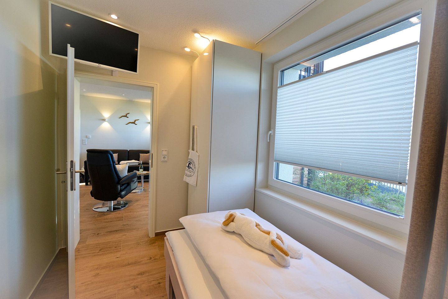 Die moderne Erdgeschosswohnung bietet zwei geschmackvoll eingerichtete Schlafzimmer (Doppel- und Einzelbett) sowie ein elegantes Schlafsofa im Wohnbereich. Eine offene, voll ausgestattete Küche, Fußbodenheizung, ein helles Tageslichtbad mit Miele-Waschtrockner, kostenfreies WLAN und drei Fernseher sorgen für höchsten Komfort.