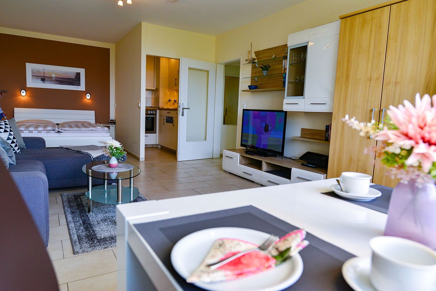 Unsere stilvollen Zweiraumapartments (40–50 m²) und großzügigen Wohnungen (ca. 60 m²) mit zwei separaten Schlafzimmern bieten Ihnen komfortables Wohnen in bester Lage. Einige Einheiten verfügen zusätzlich über weitere Schlafmöglichkeiten im Wohnraum – ideal für Familien oder kleine Gruppen.