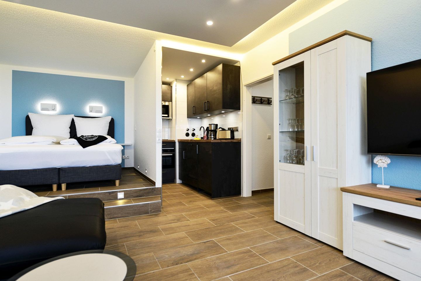 Unsere stilvollen Zweiraumapartments (40–50 m²) und großzügigen Wohnungen (ca. 60 m²) mit zwei separaten Schlafzimmern bieten Ihnen komfortables Wohnen in bester Lage. Einige Einheiten verfügen zusätzlich über weitere Schlafmöglichkeiten im Wohnraum – ideal für Familien oder kleine Gruppen.