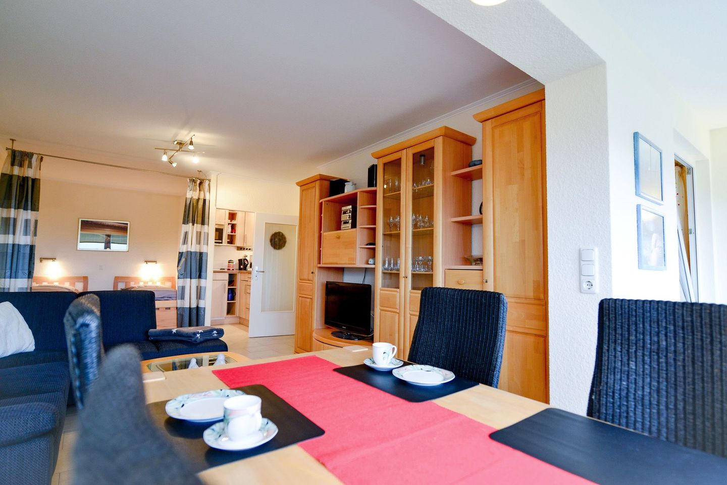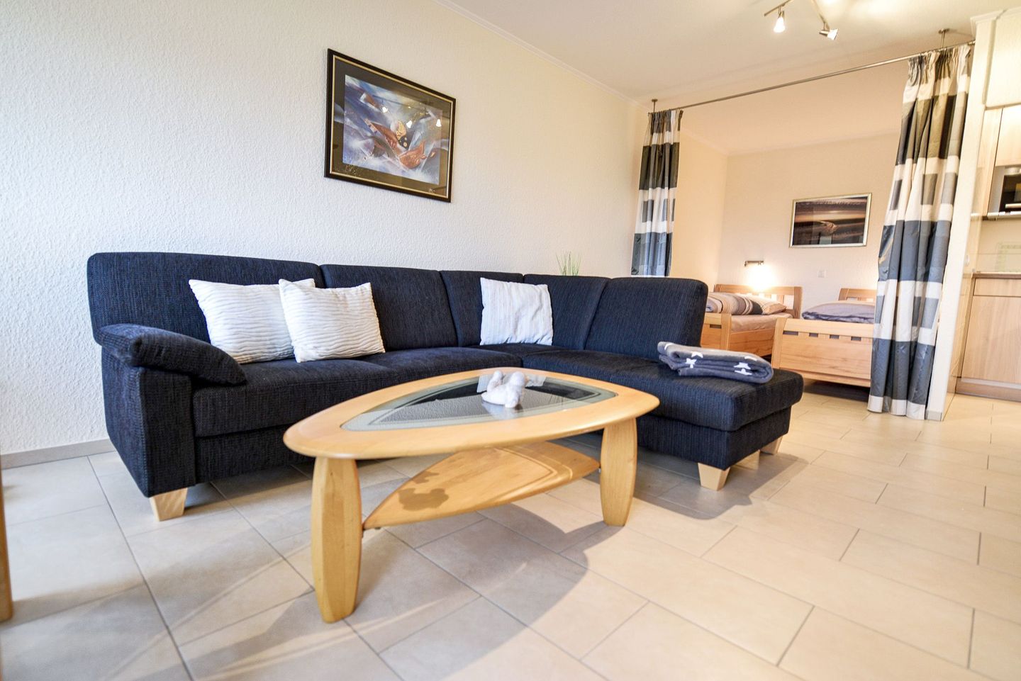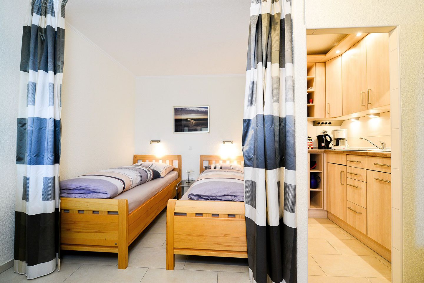 Die ca. 50m² große Ferienwohnung für bis zu 3 Personen weiß zu gefallen und sorgt mit schöner und moderner Einrichtung für besonderes Urlaubserlebnis an der Nordsee! Die lichtdurchflutete Ferienwohnung befindet sich in direkter Strandlage mit einer separaten, offenen und vollausgestatteten Küchenzeile, sodass Sie jeden Urlaubstag mit einem entspannten Frühstück mit direktem Blick aufs Meer beginnen können. Erholung während Ihres Strandurlaubs garantieren Ihnen, neben dem wunderbaren Sandstrand, das neue Bad mit Dusche/WC, das Schwimmbad im eigenen Haus, sowie die Sauna, die gegen Gebühr genutzt werden kann. Ein besonderes Highlight dieser Ferienwohnung ist die verglaste und zu öffnende Fensterfront, die Ihnen einen unvergesslichen Ausblick aufs Meer bietet.